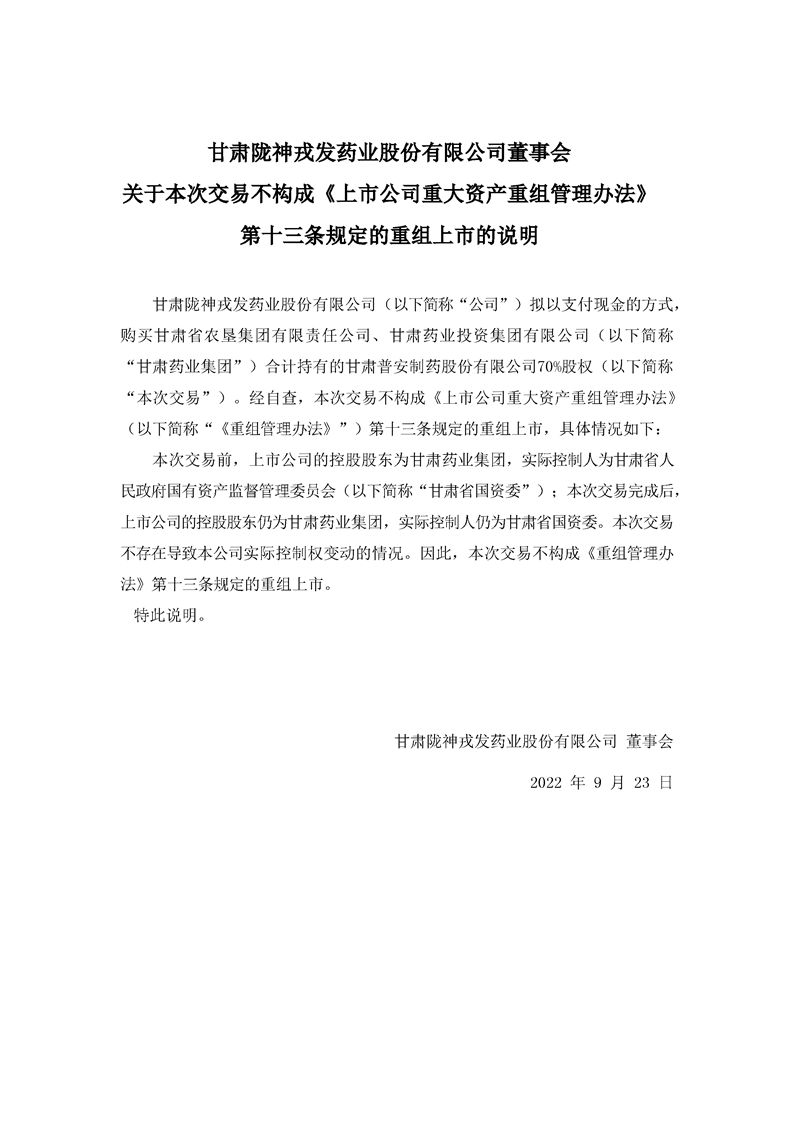 董事会关于本次交易不构成《上市公司重大资产重组管理办法》第十三条规定的重组上市的说明