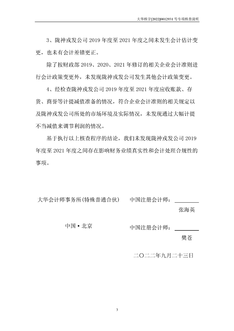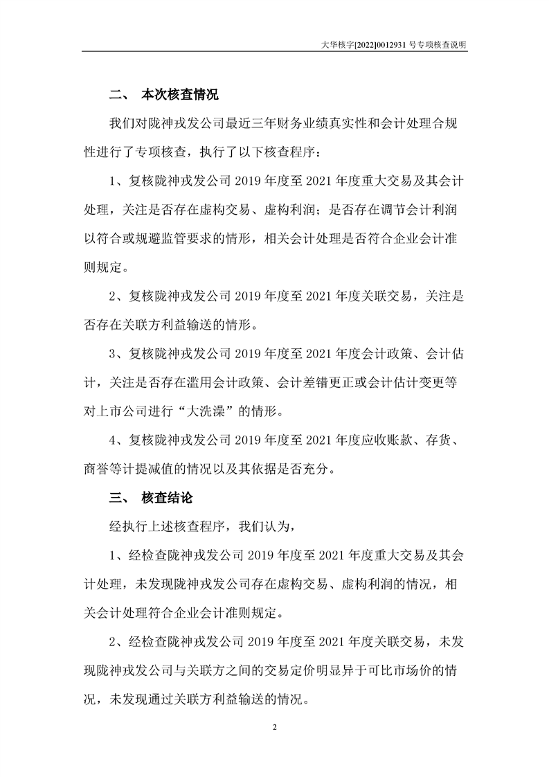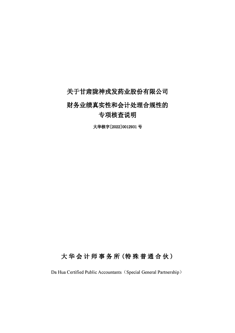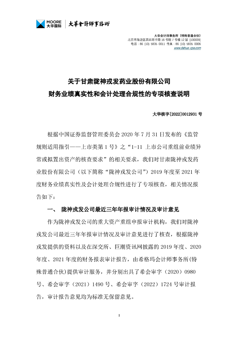 大华会计师事务所关于非凡娱乐财务业绩真实性和会计处理合规性的专项核查说明
