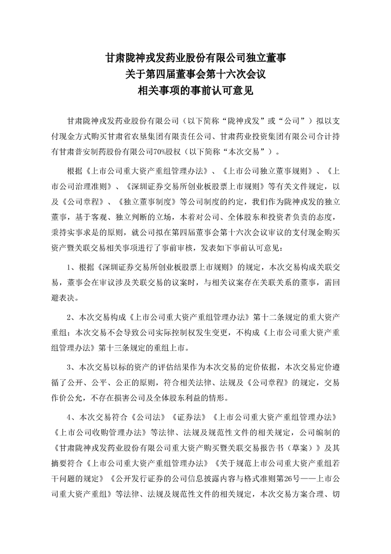 独立董事关于第四届董事会第十六次会议相关事项的事前认可的意见