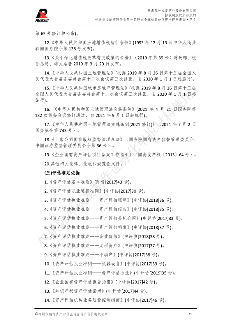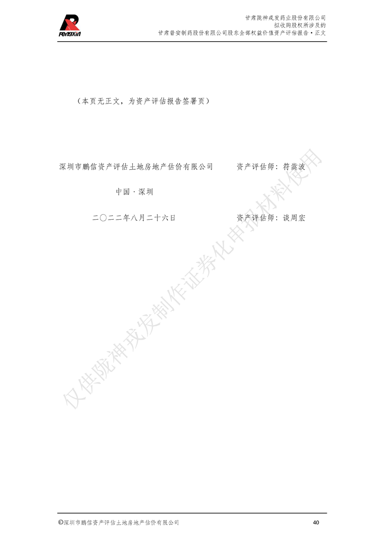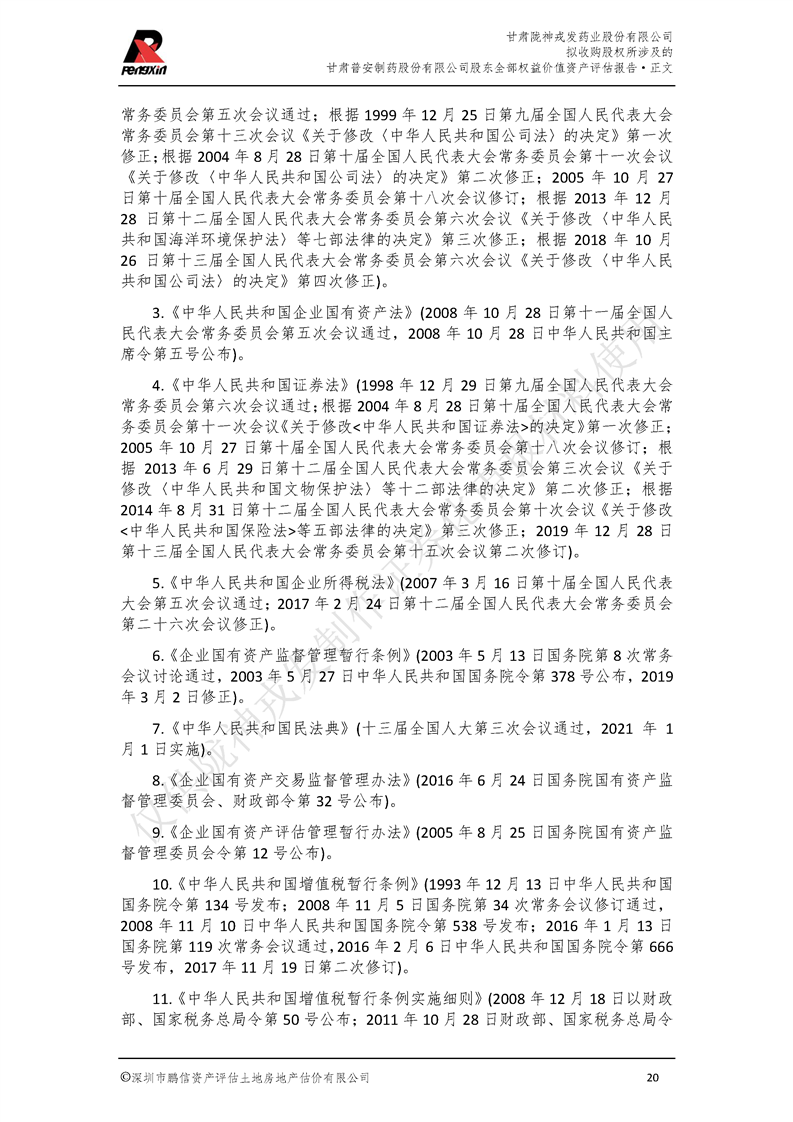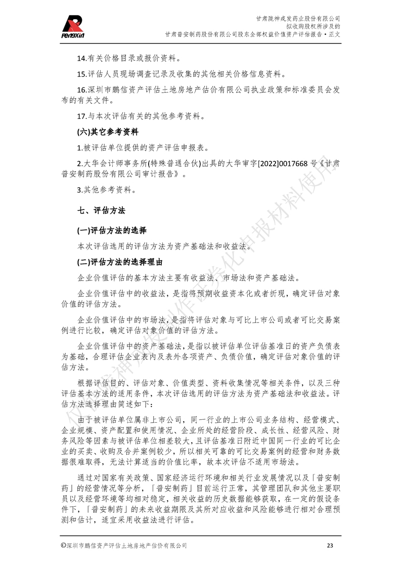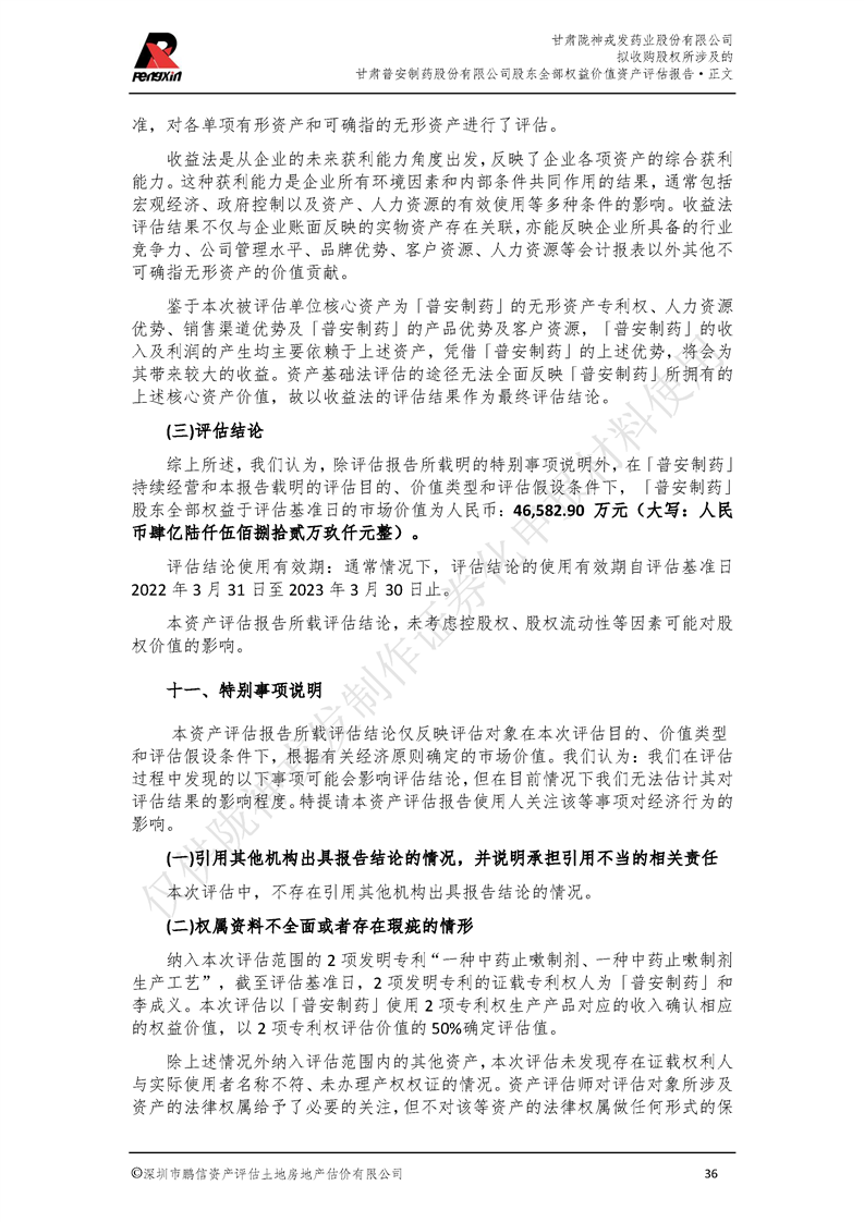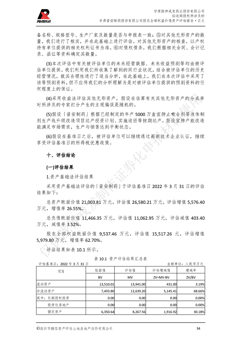 甘肃普安制药股份有限公司全部权益价值资产评估报告-鹏信资评报字[2022]第S152号