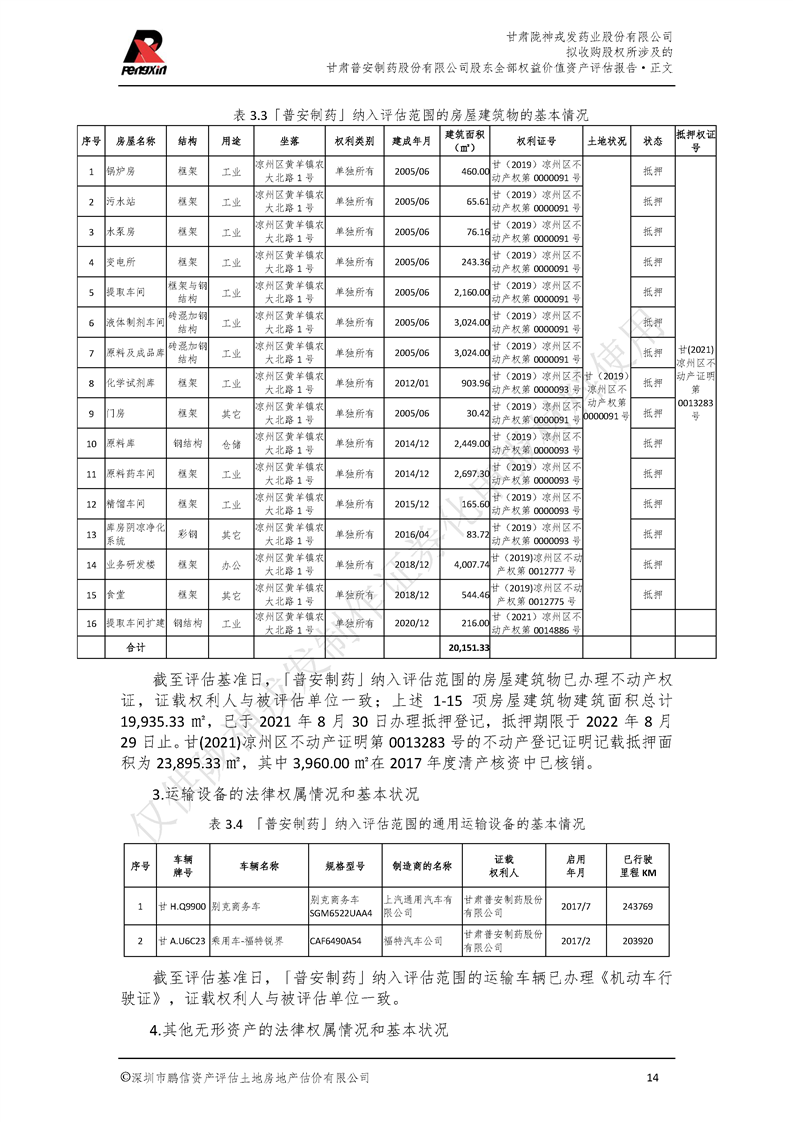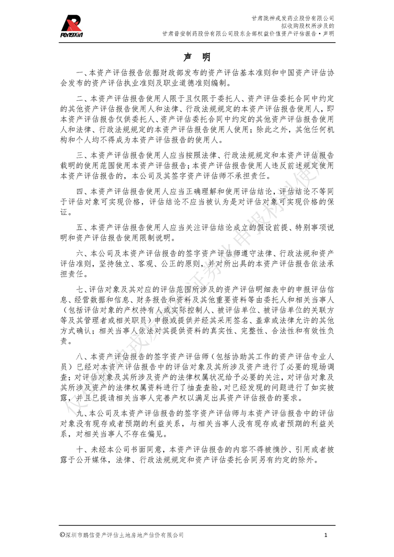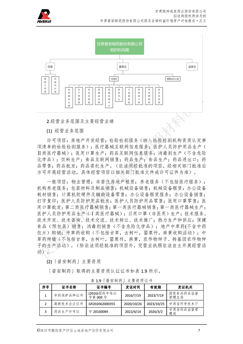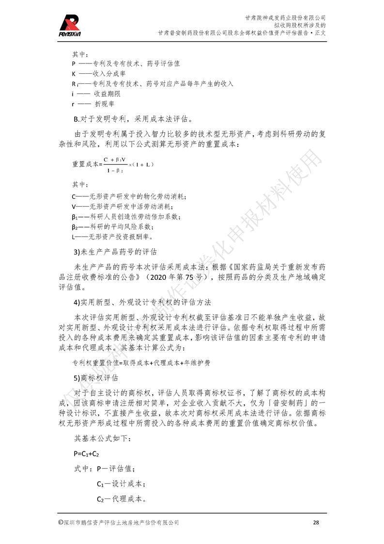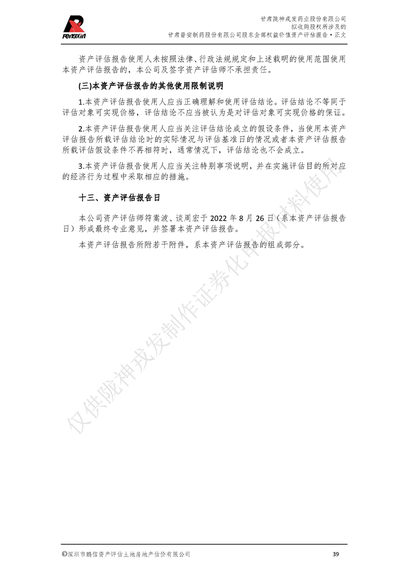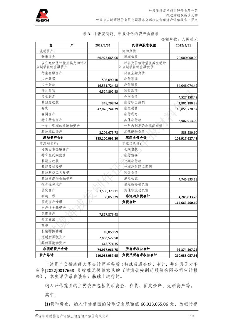 甘肃普安制药股份有限公司全部权益价值资产评估报告-鹏信资评报字[2022]第S152号
