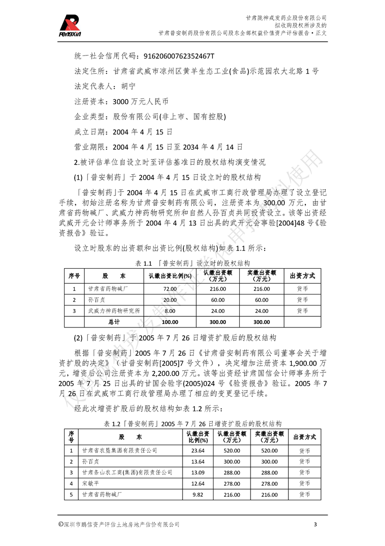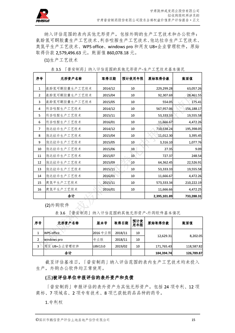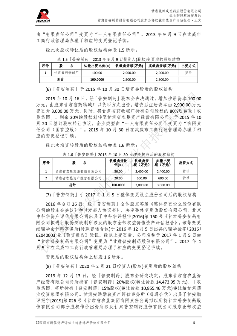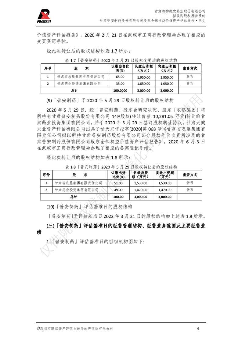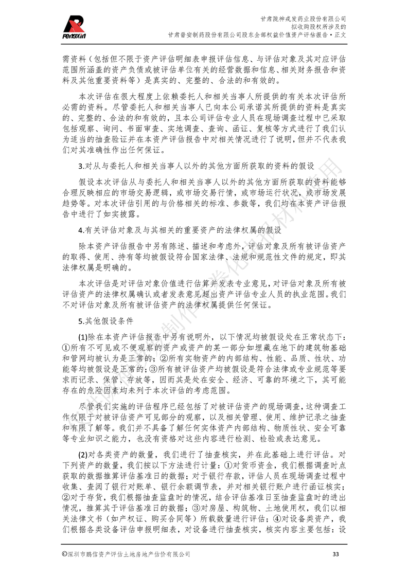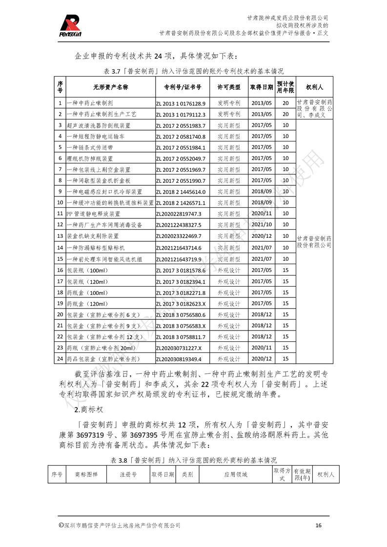 甘肃普安制药股份有限公司全部权益价值资产评估报告-鹏信资评报字[2022]第S152号