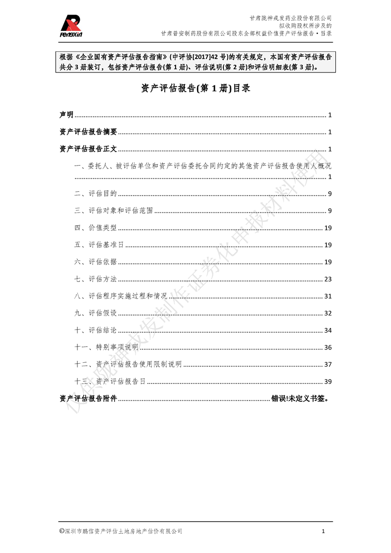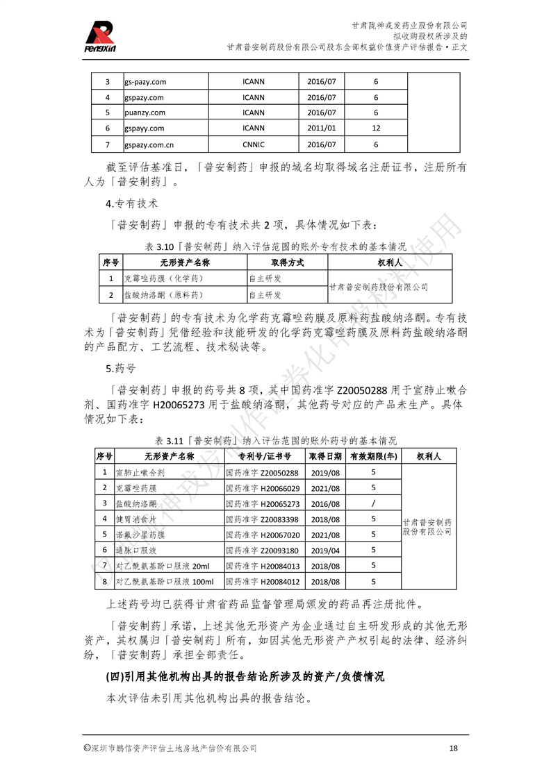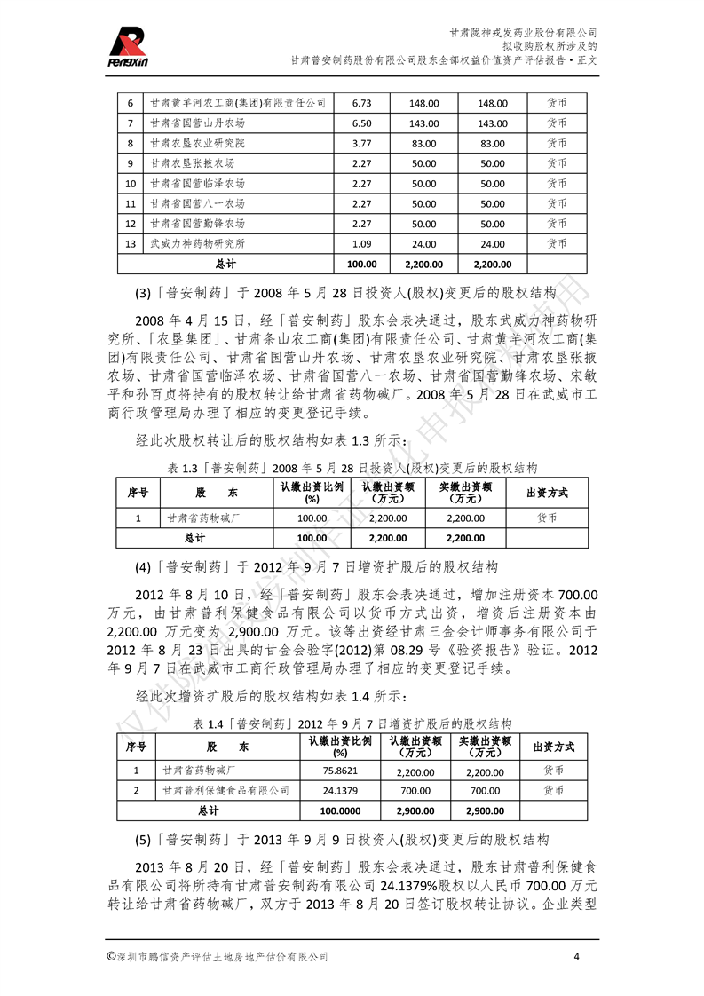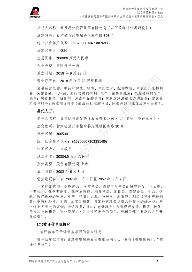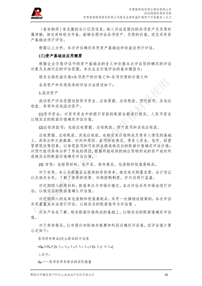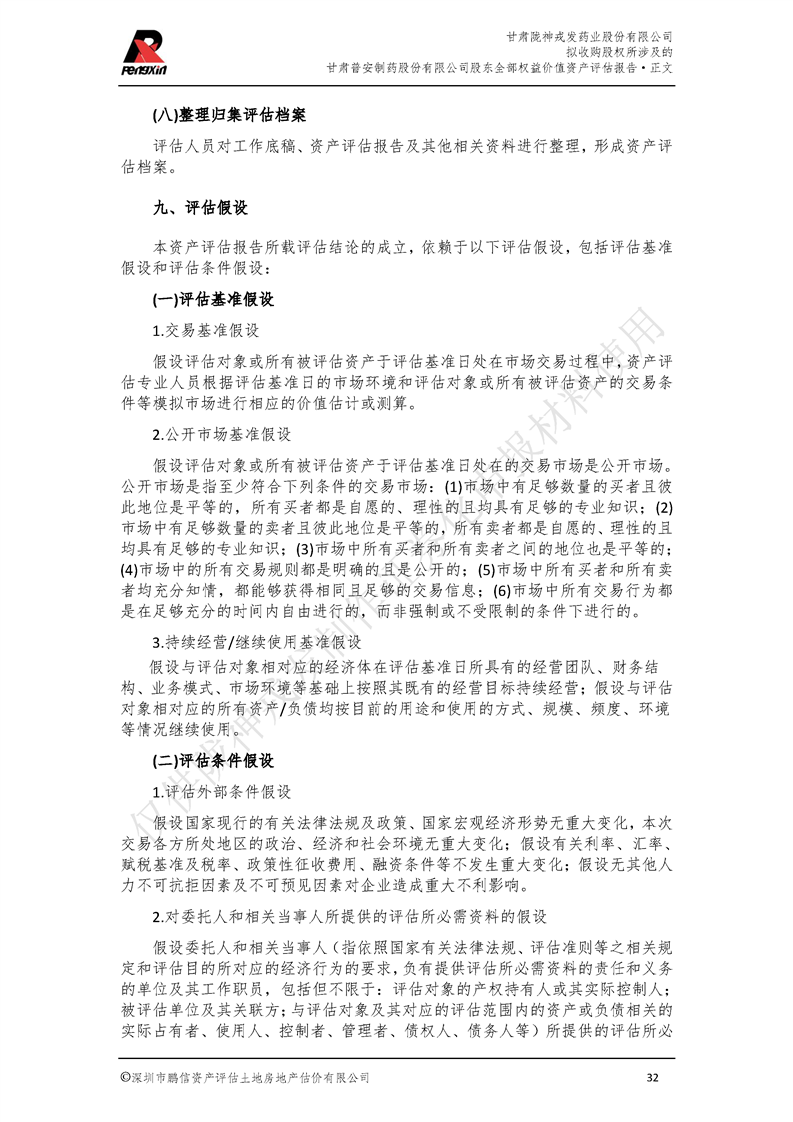 甘肃普安制药股份有限公司全部权益价值资产评估报告-鹏信资评报字[2022]第S152号