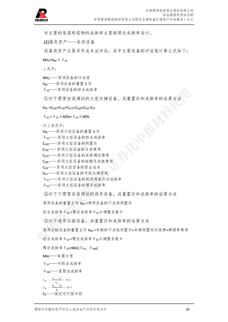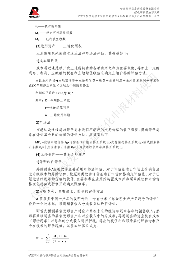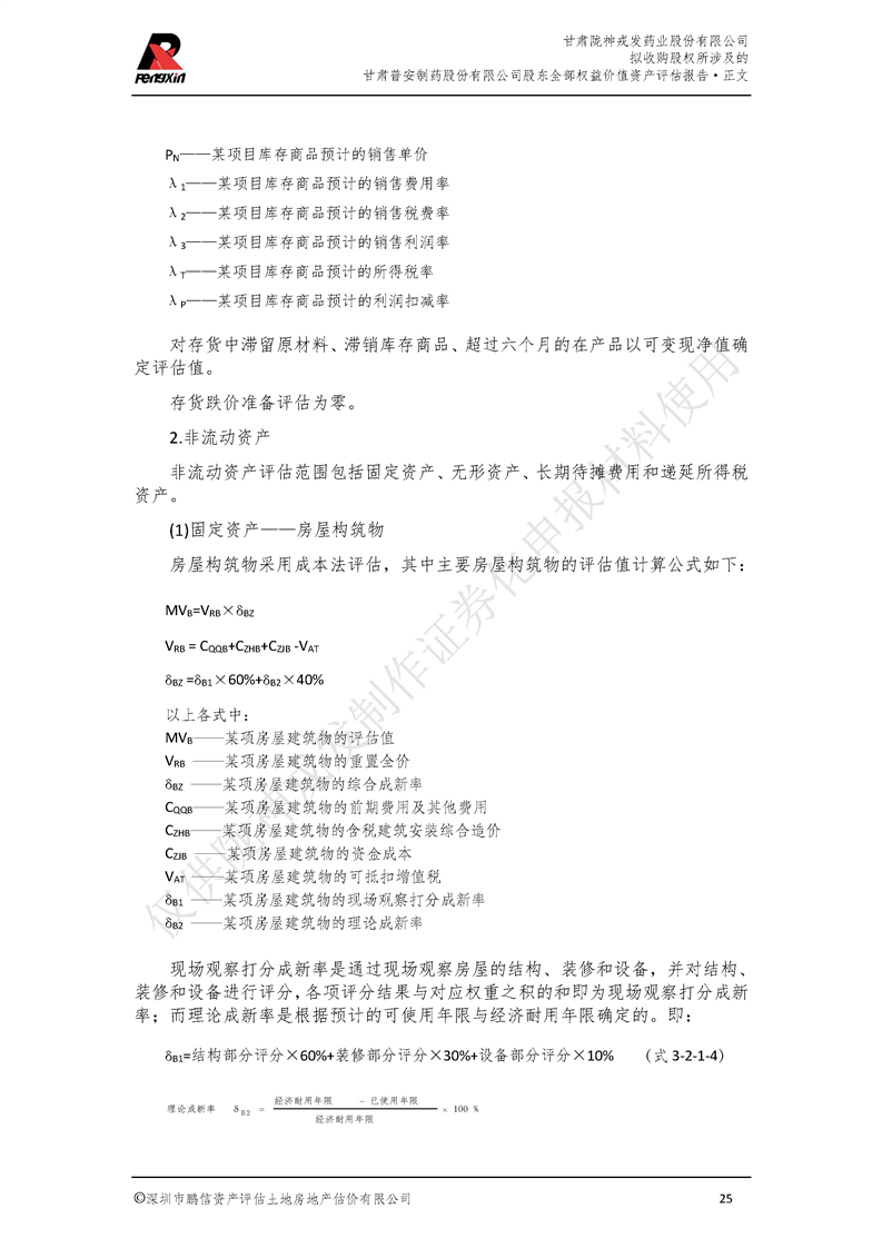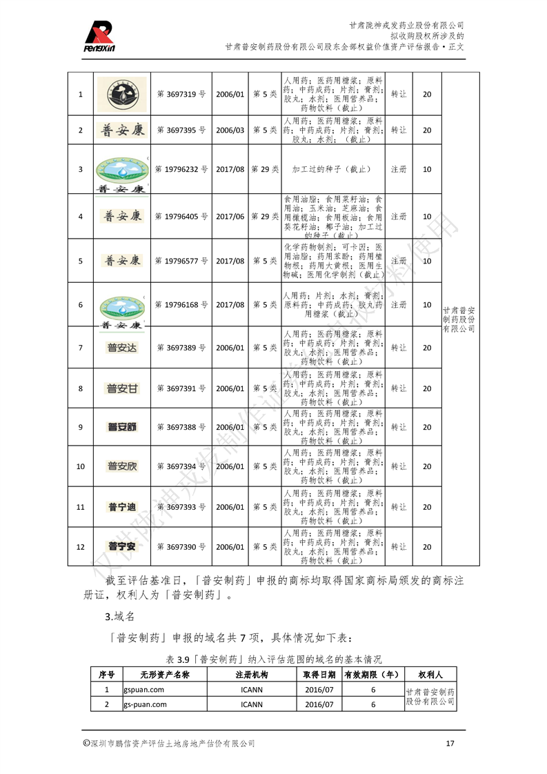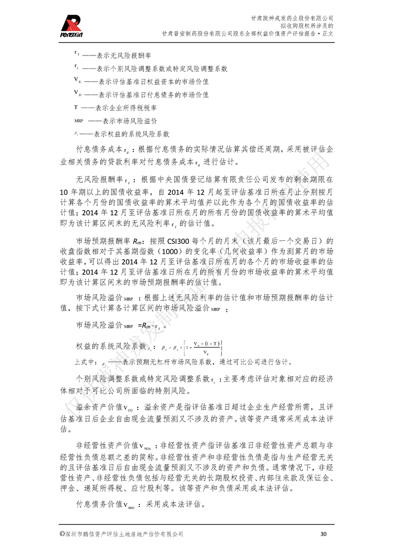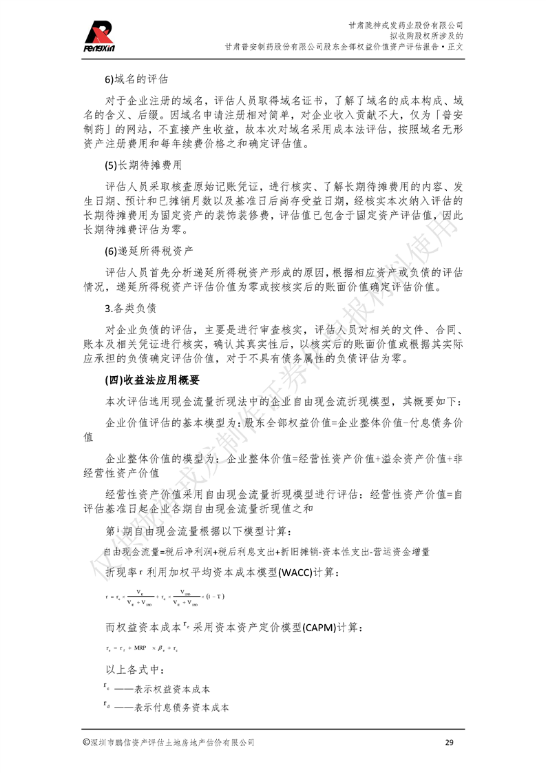 甘肃普安制药股份有限公司全部权益价值资产评估报告-鹏信资评报字[2022]第S152号