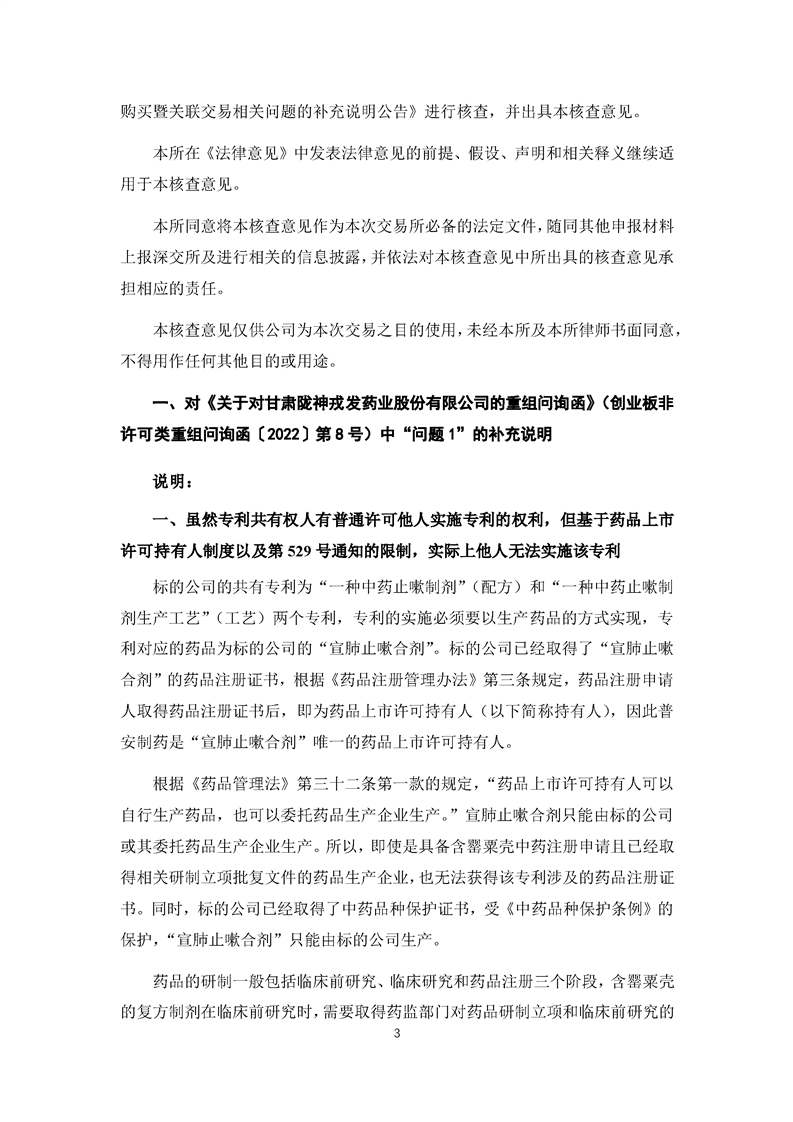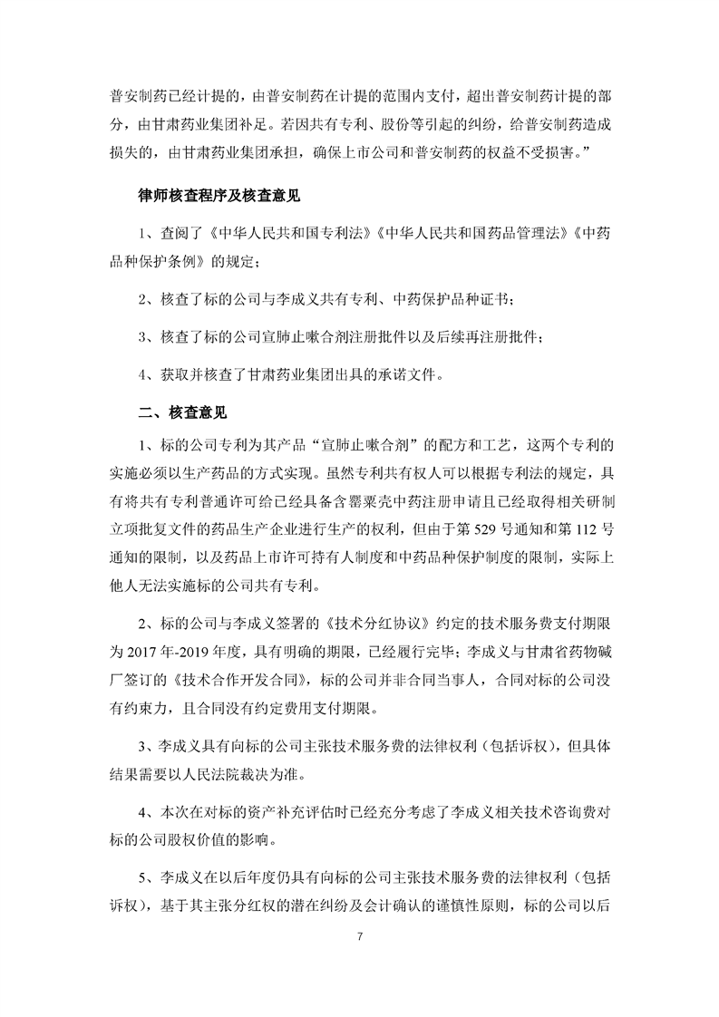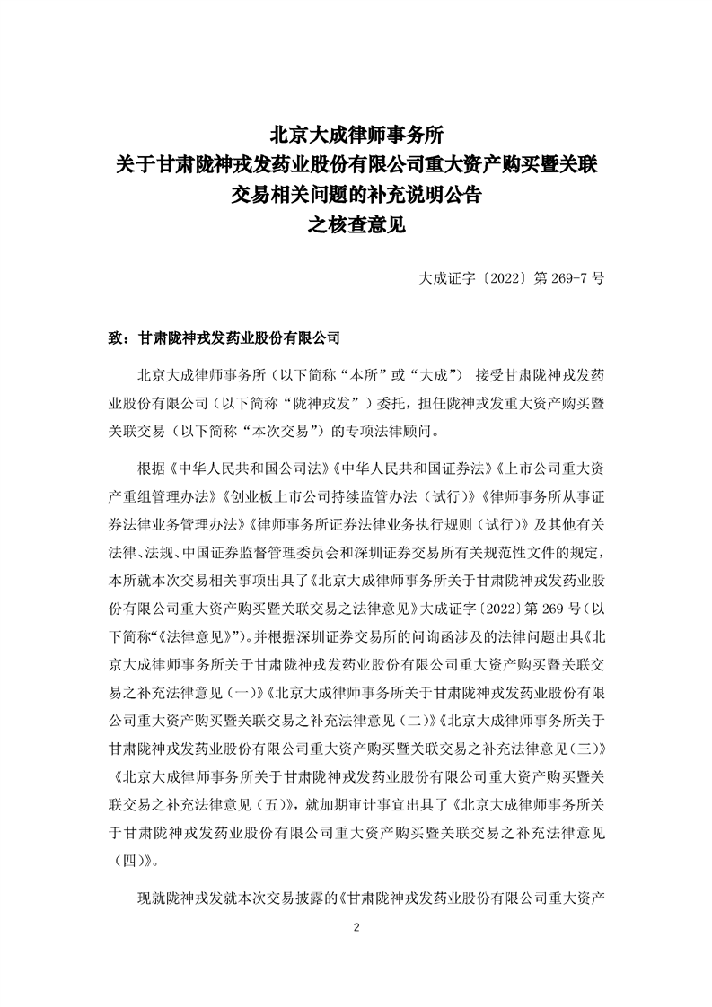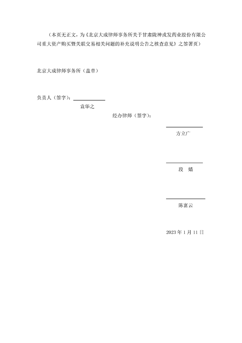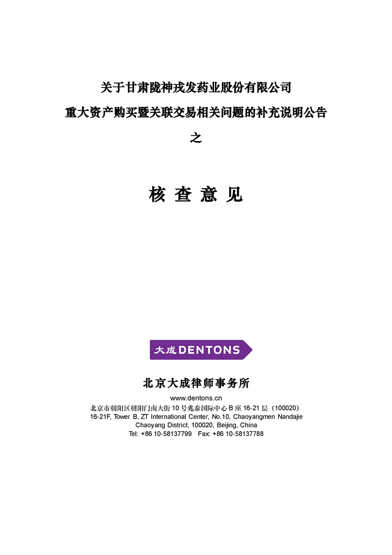 北京大成律师事务所关于甘肃非凡娱乐药业股份有限公司重大资产购买暨关联交易相关问题的补充说明公告之核查意见