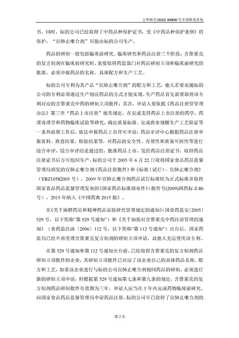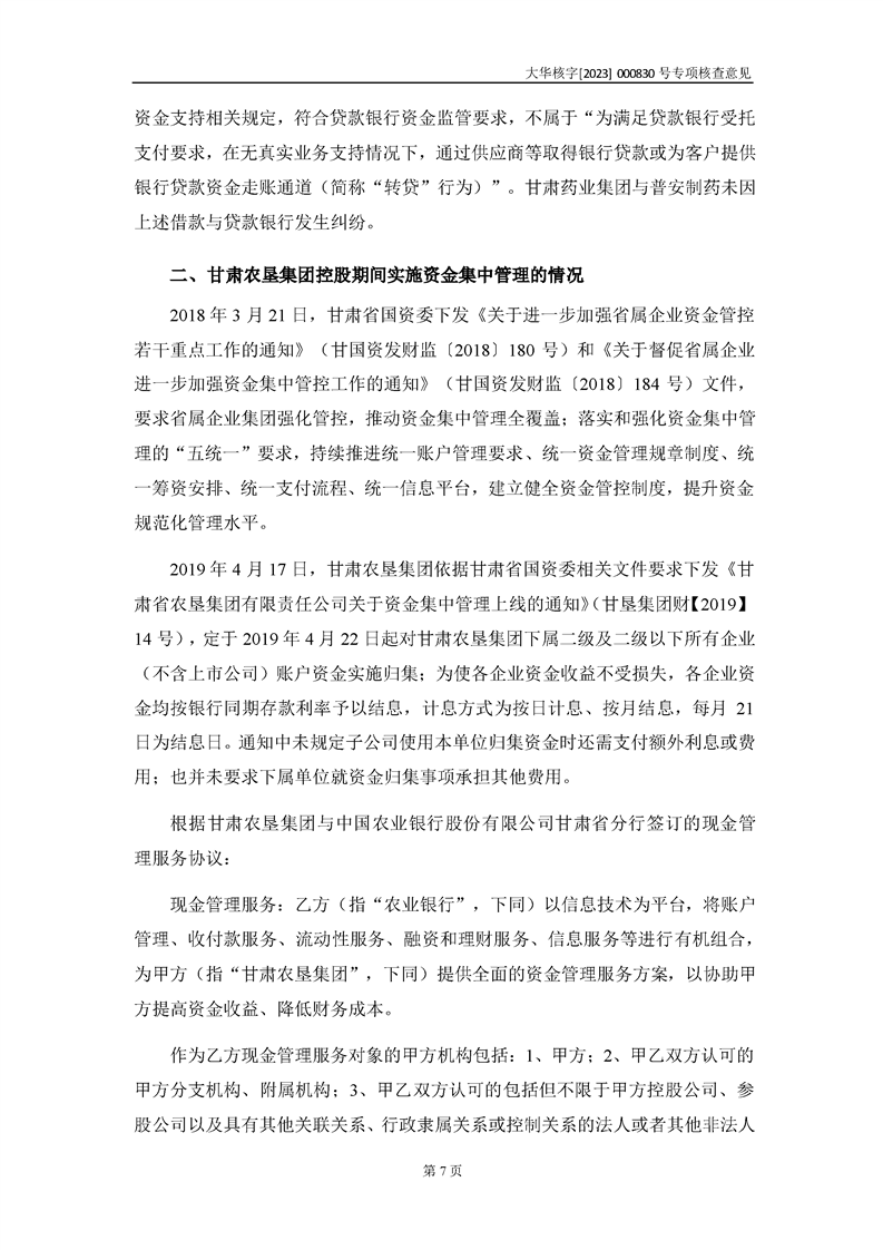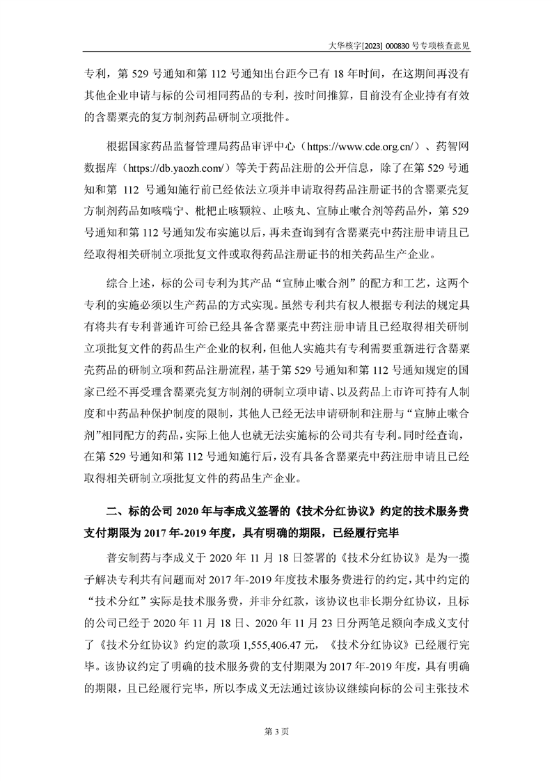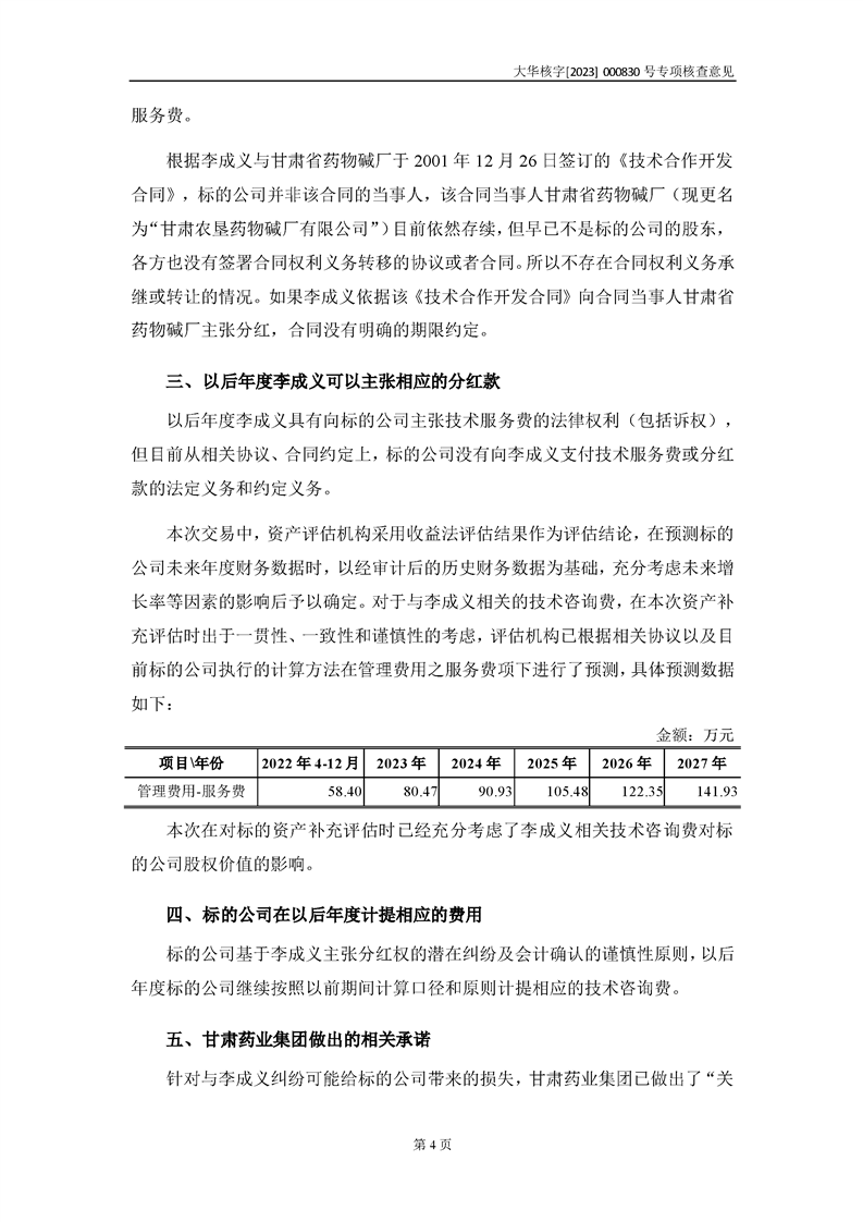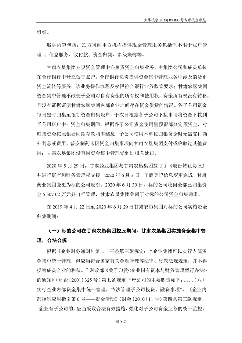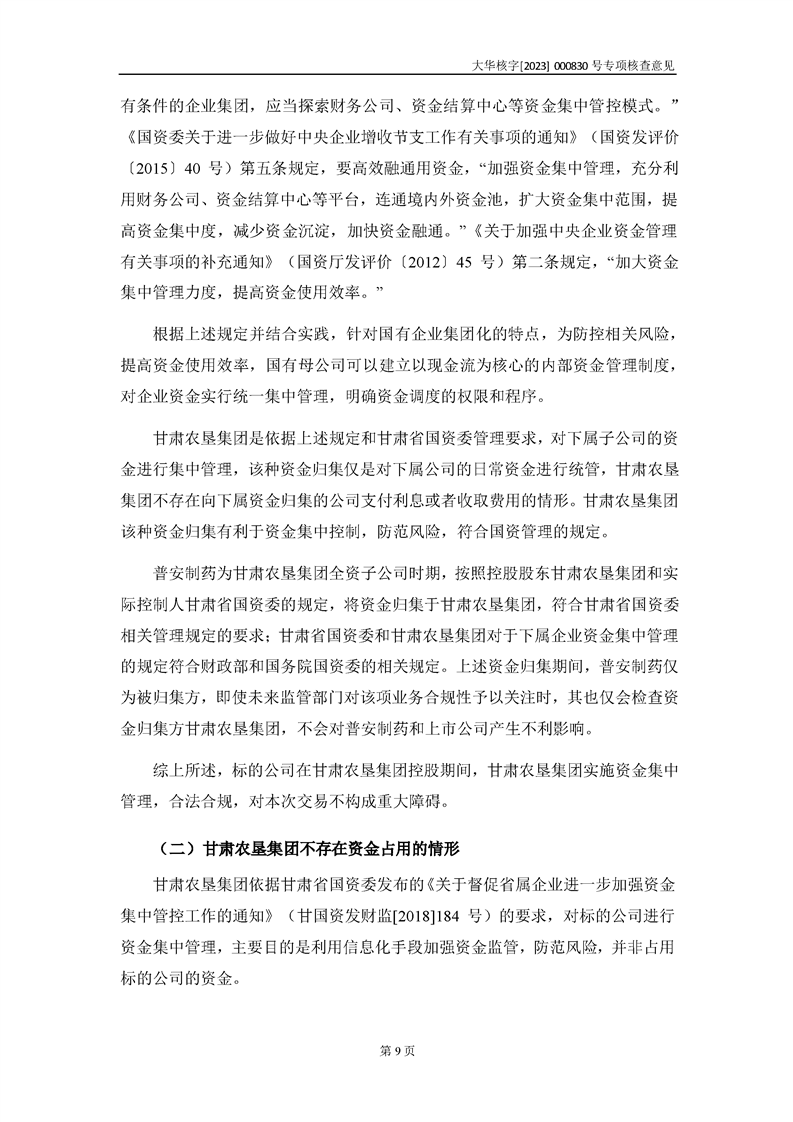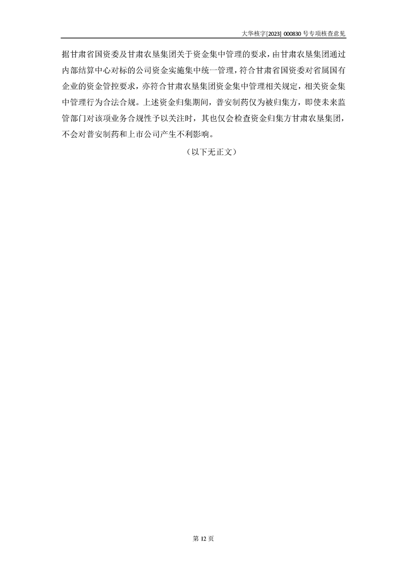 大华会计师事务所关于甘肃非凡娱乐药业股份有限公司重大资产购买暨关联交易相关问题补充说明的专项核查意见--大华核字[2023]000830号