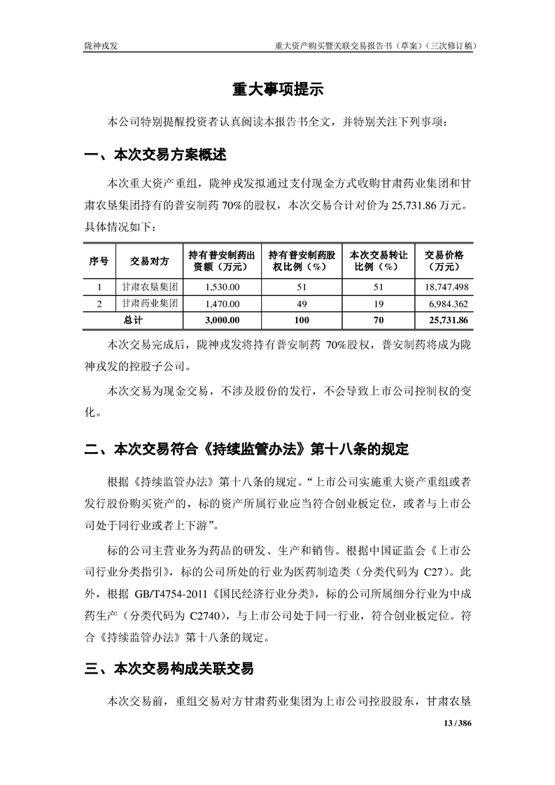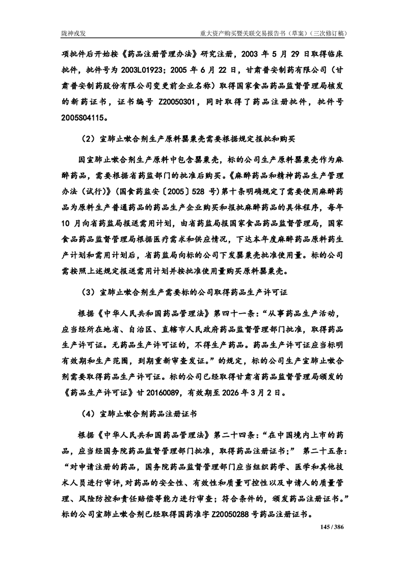 甘肃非凡娱乐药业股份有限公司重大资产购买暨关联交易报告书(草案)(三次修订稿)