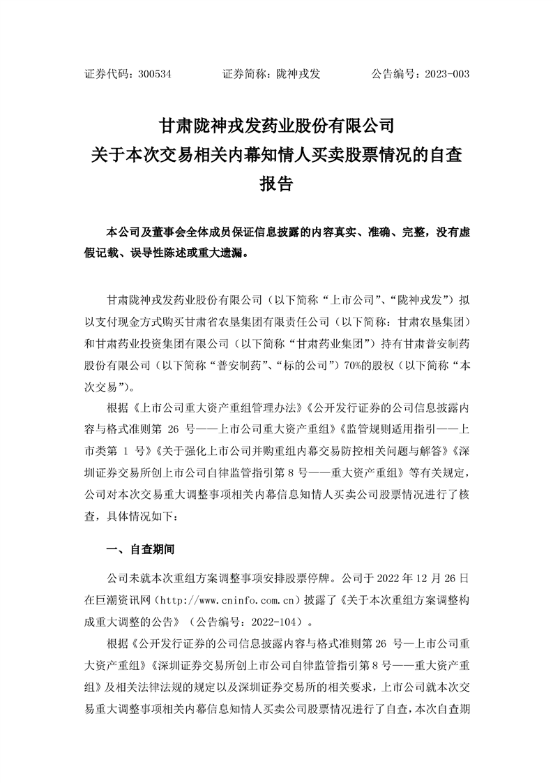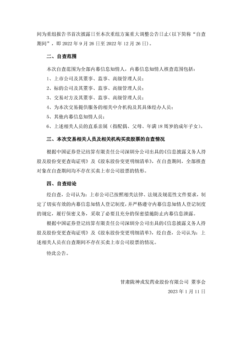 关于本次交易内幕信息知情人买卖股票情况的自查报告