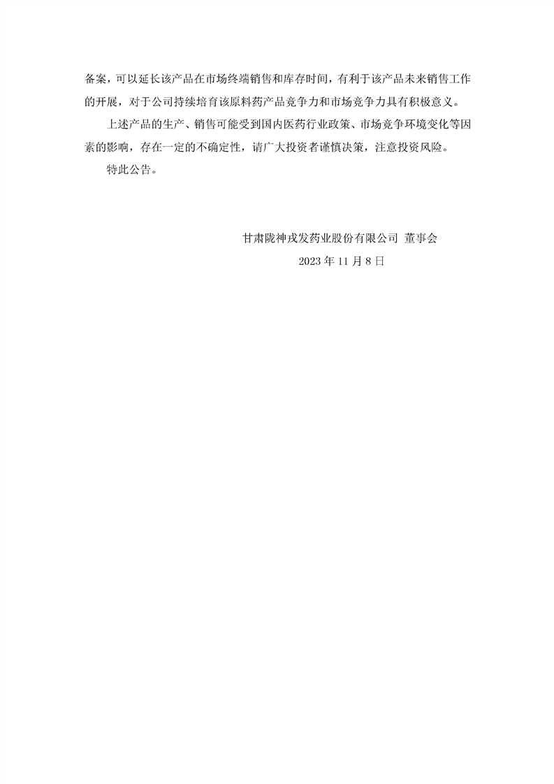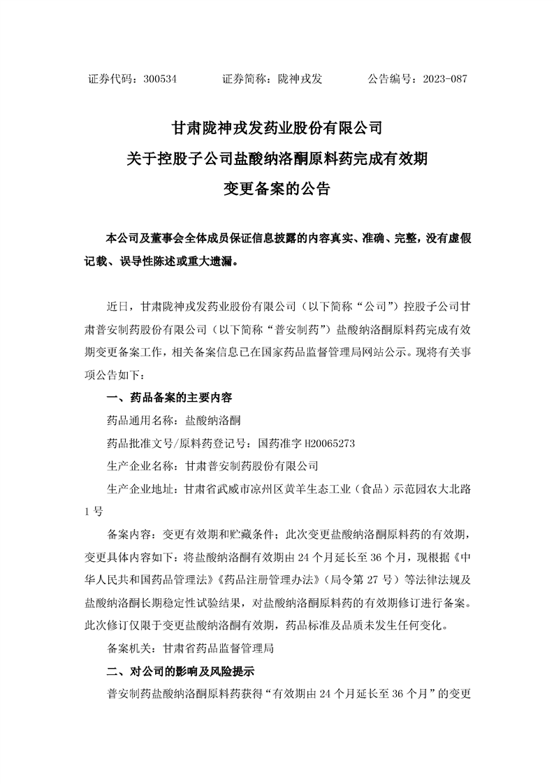 关于控股子公司原料药盐酸纳洛酮完成有效期变更备案的公告