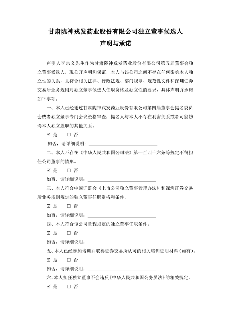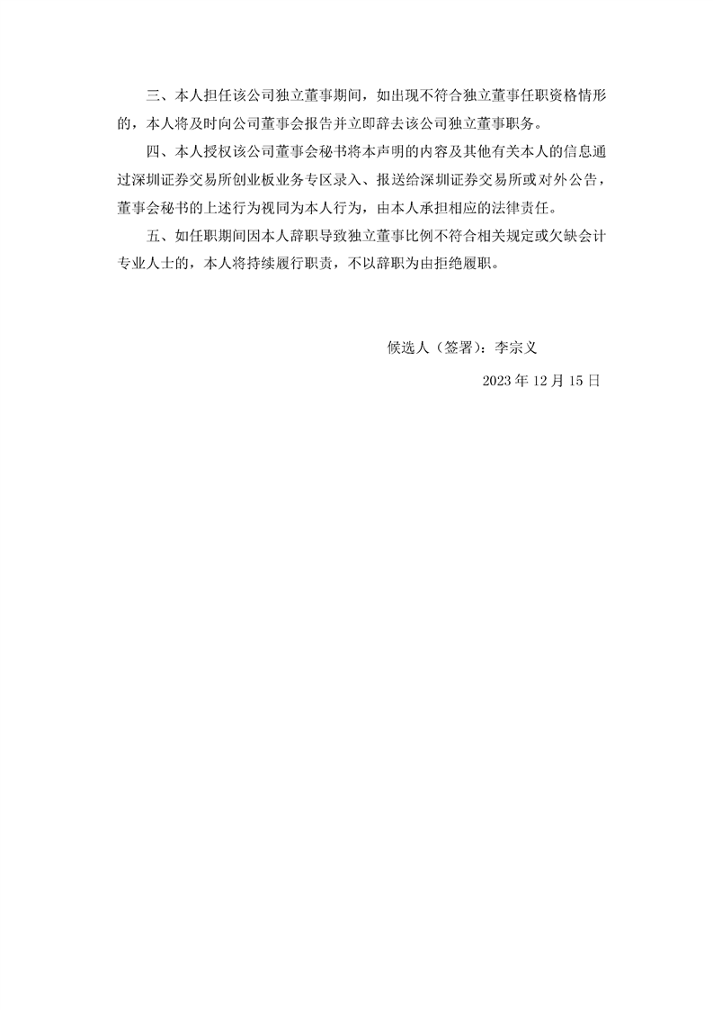 独立董事候选人声明与承诺(李宗义)