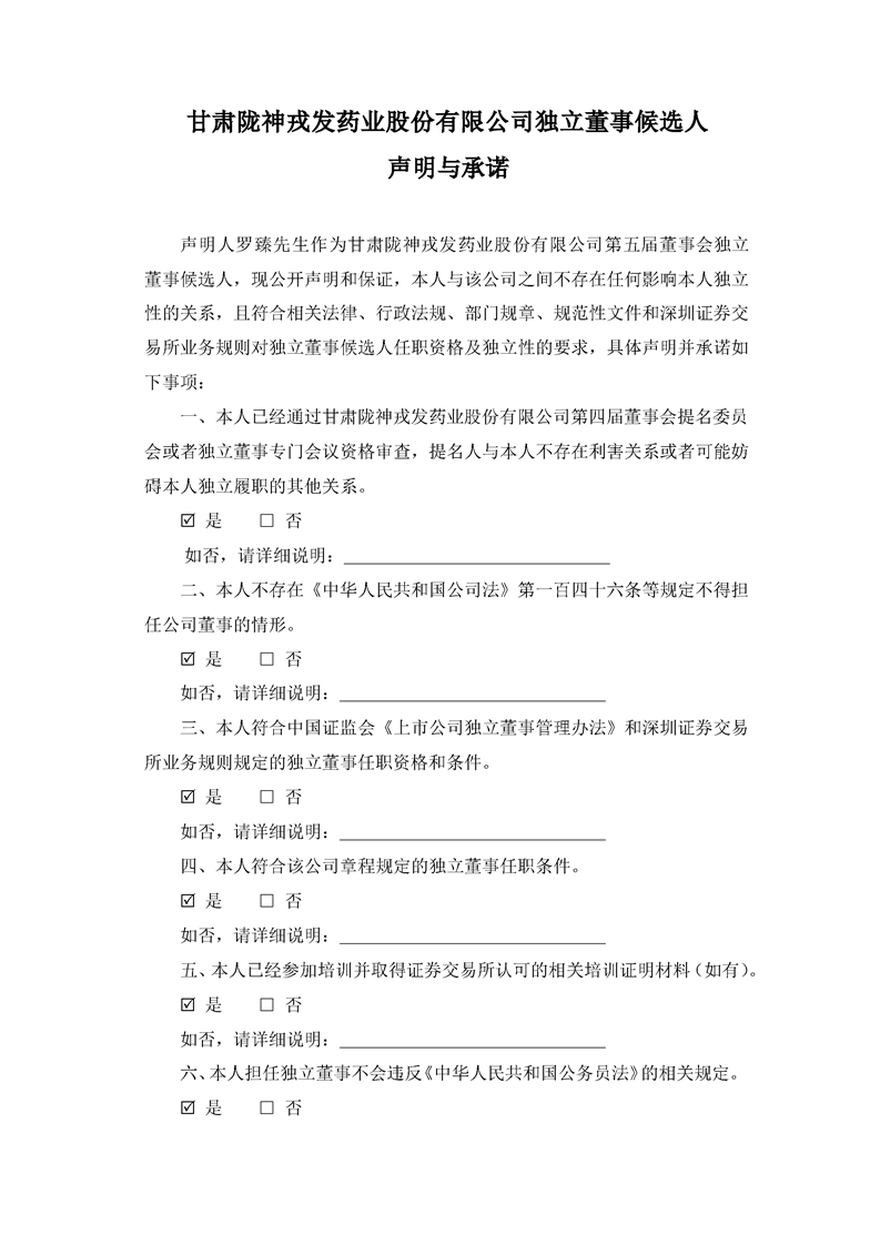 独立董事候选人声明与承诺(罗臻)