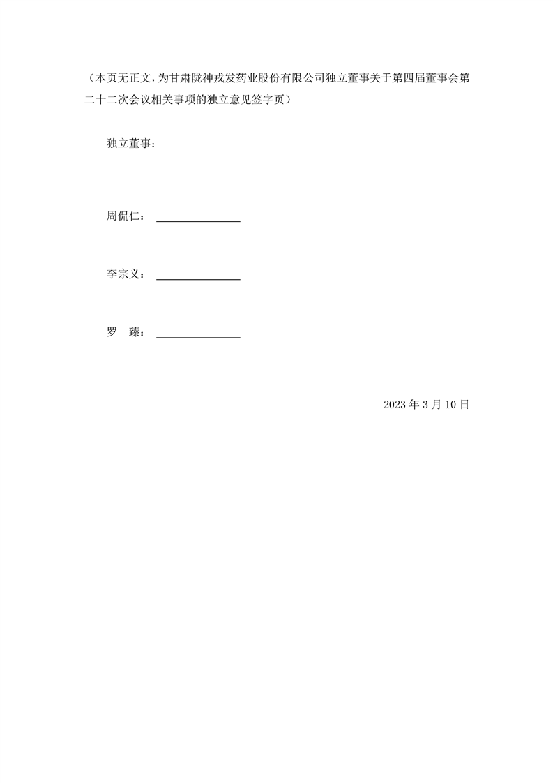 独立董事关于第四届董事会第二十二次会议相关事项的独立意见