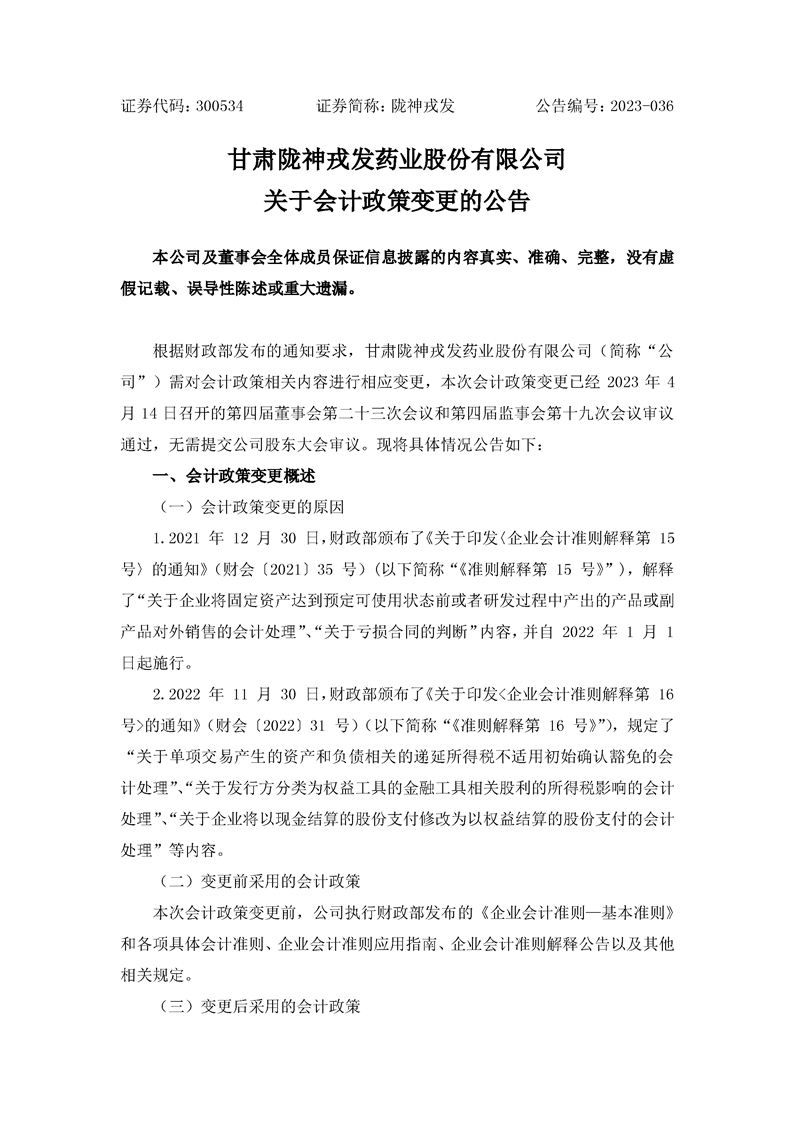 关于会计政策变更的公告