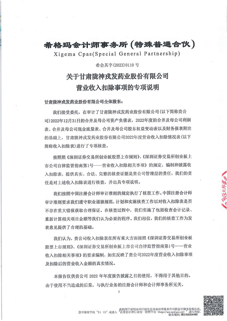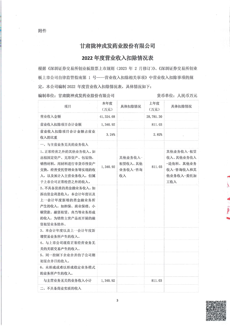 营业收入扣除事项的专项说明(更正后)