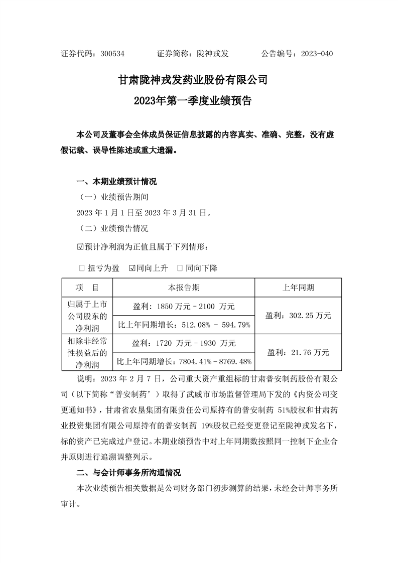 2023年第一季度业绩预告