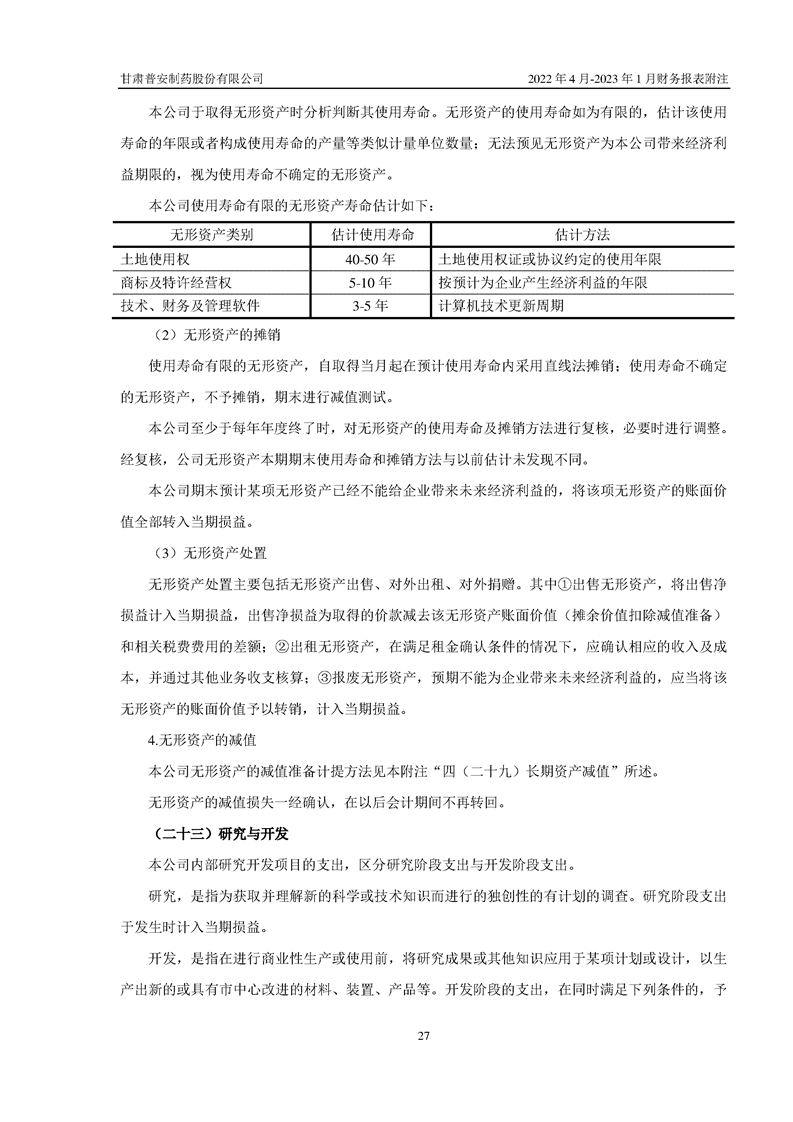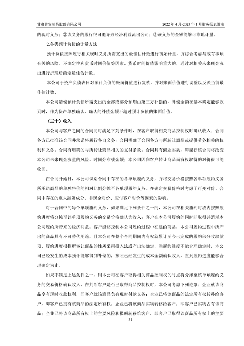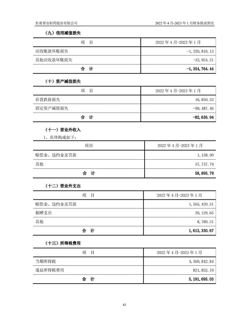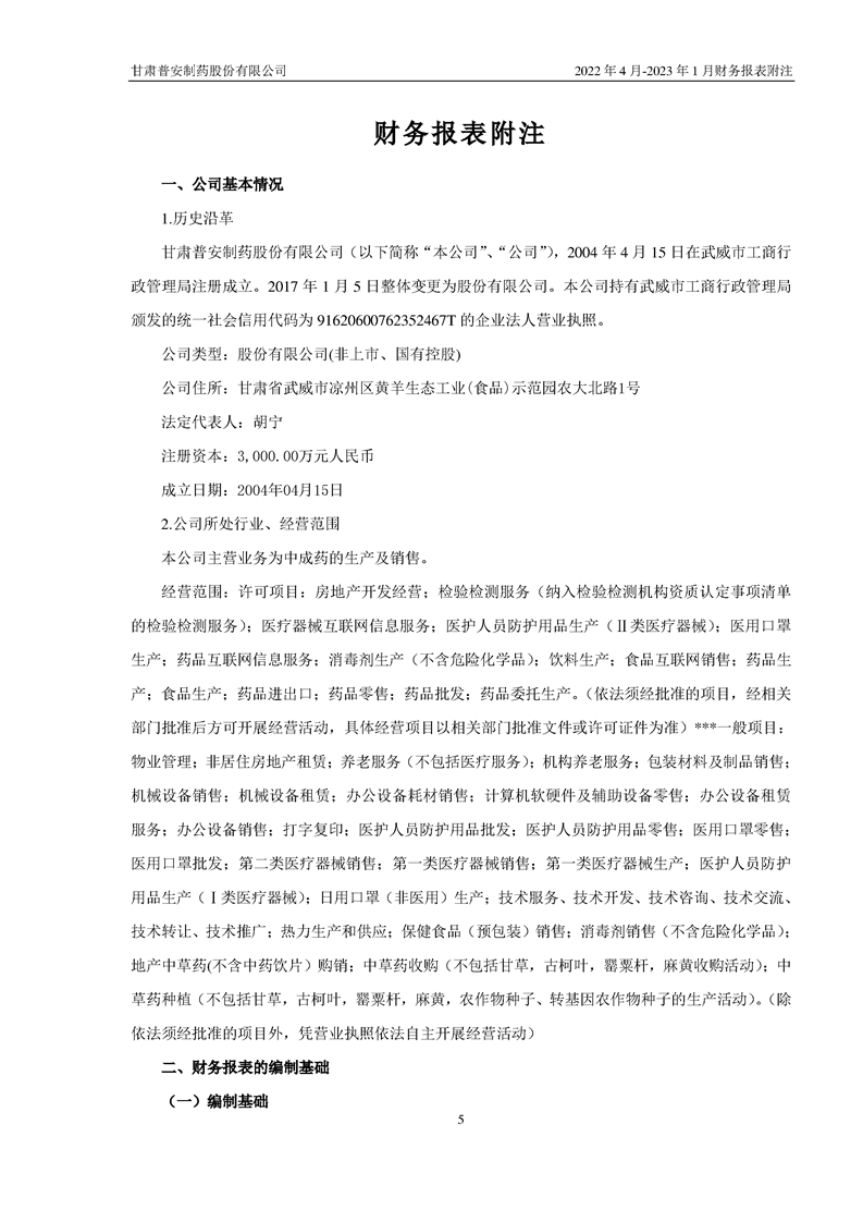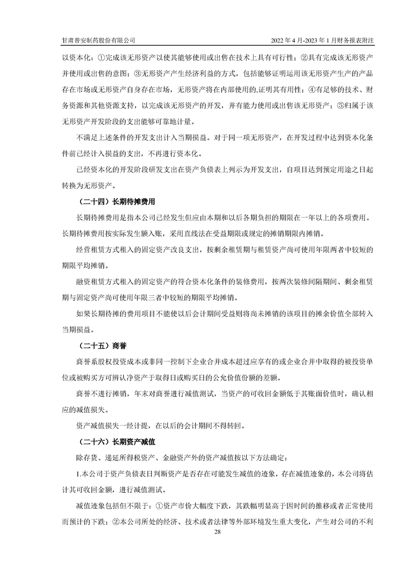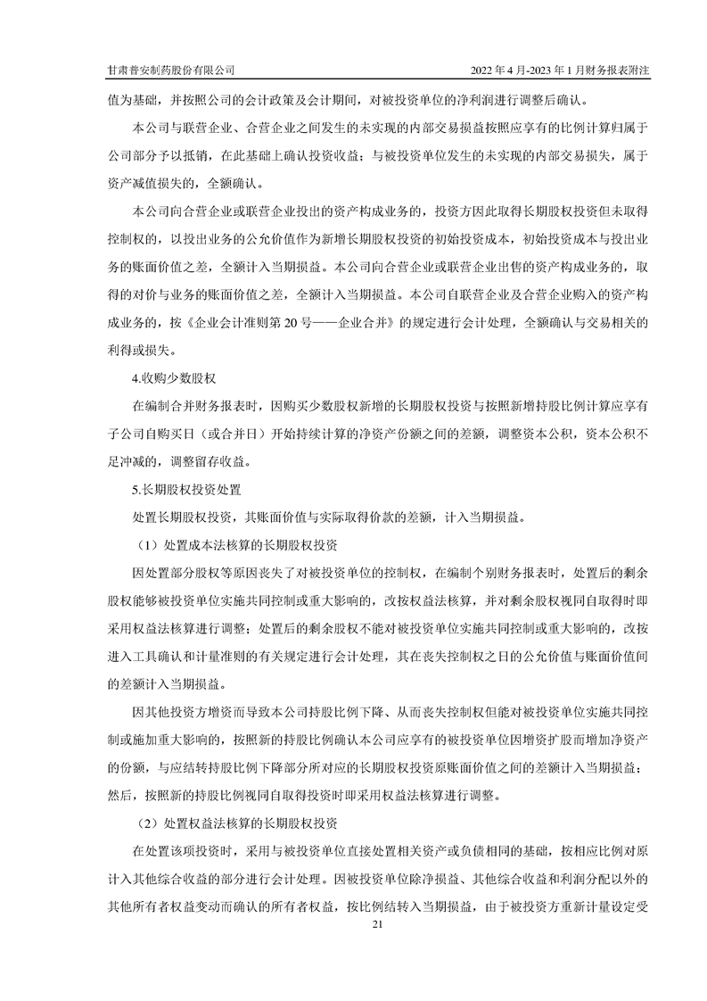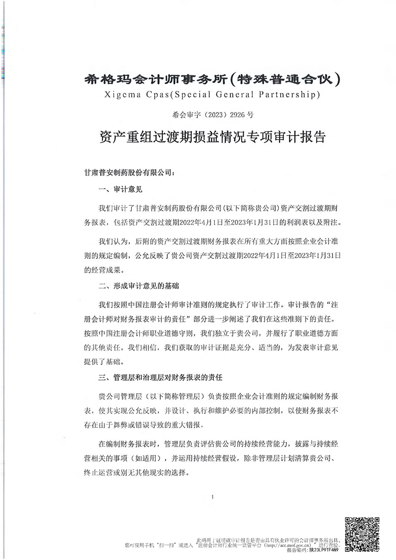 甘肃普安制药股份有限公司资产重组过渡期损益情况专项审计报告