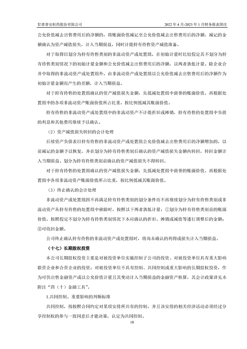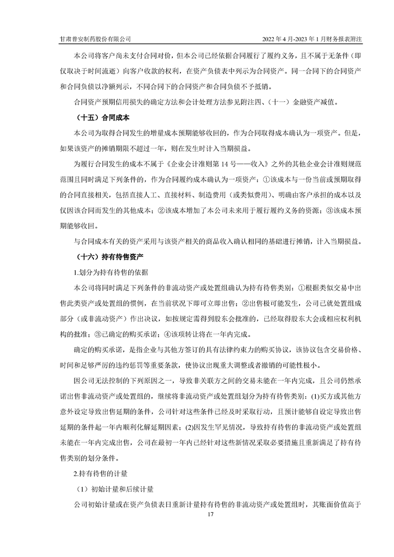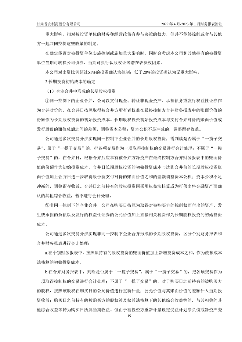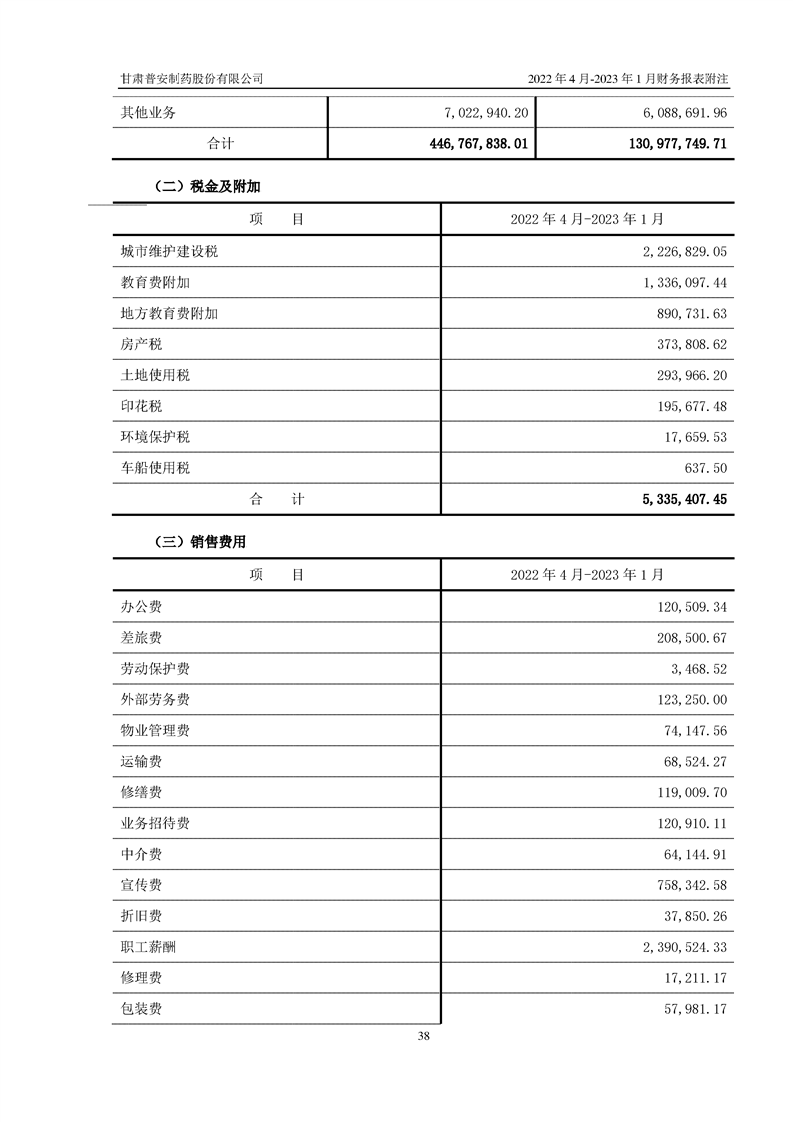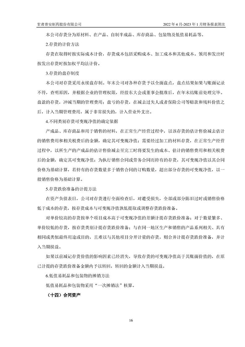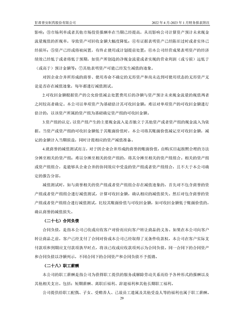 甘肃普安制药股份有限公司资产重组过渡期损益情况专项审计报告