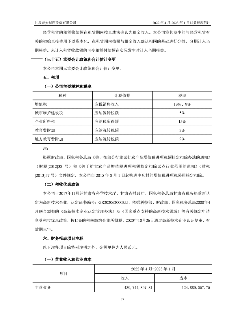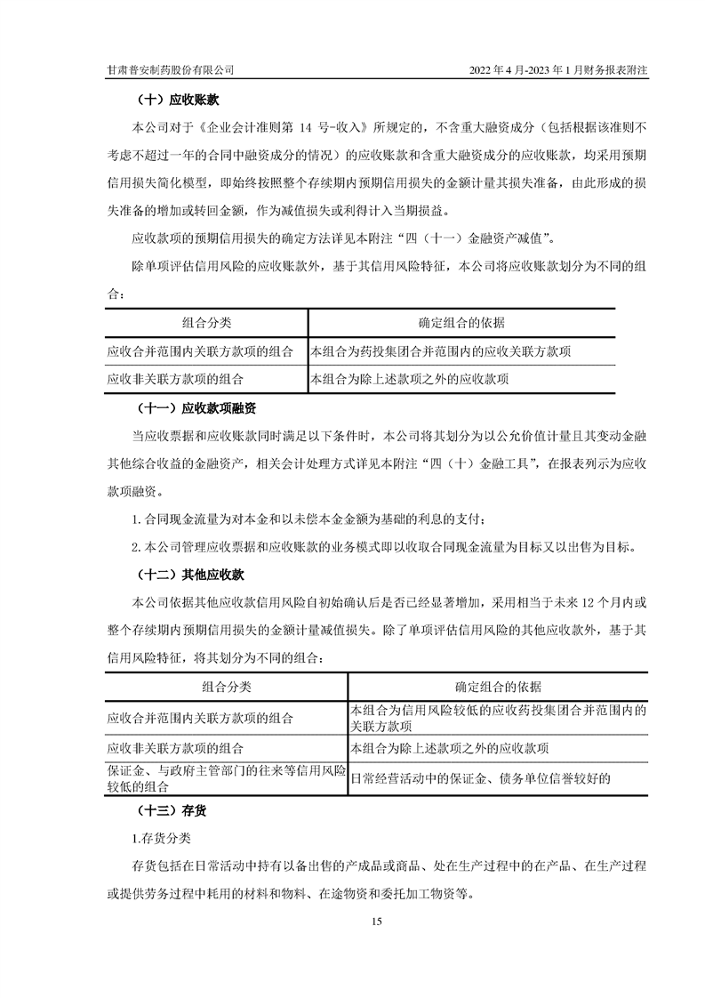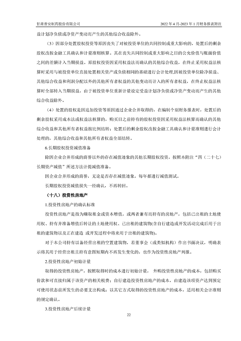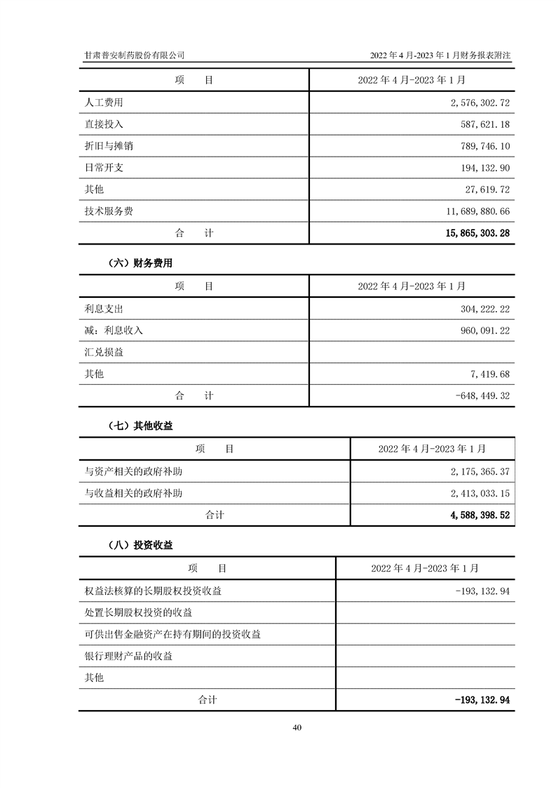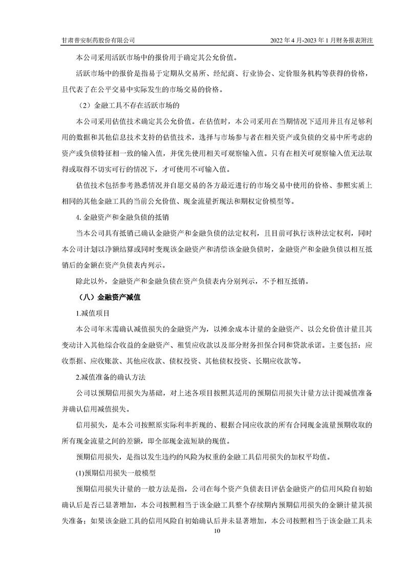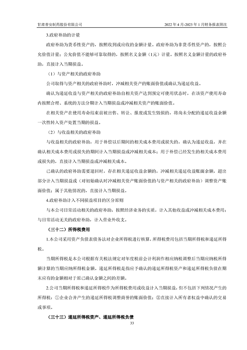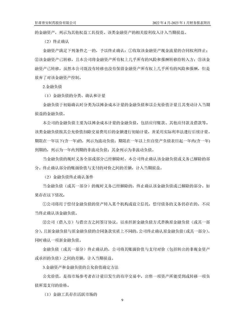 甘肃普安制药股份有限公司资产重组过渡期损益情况专项审计报告