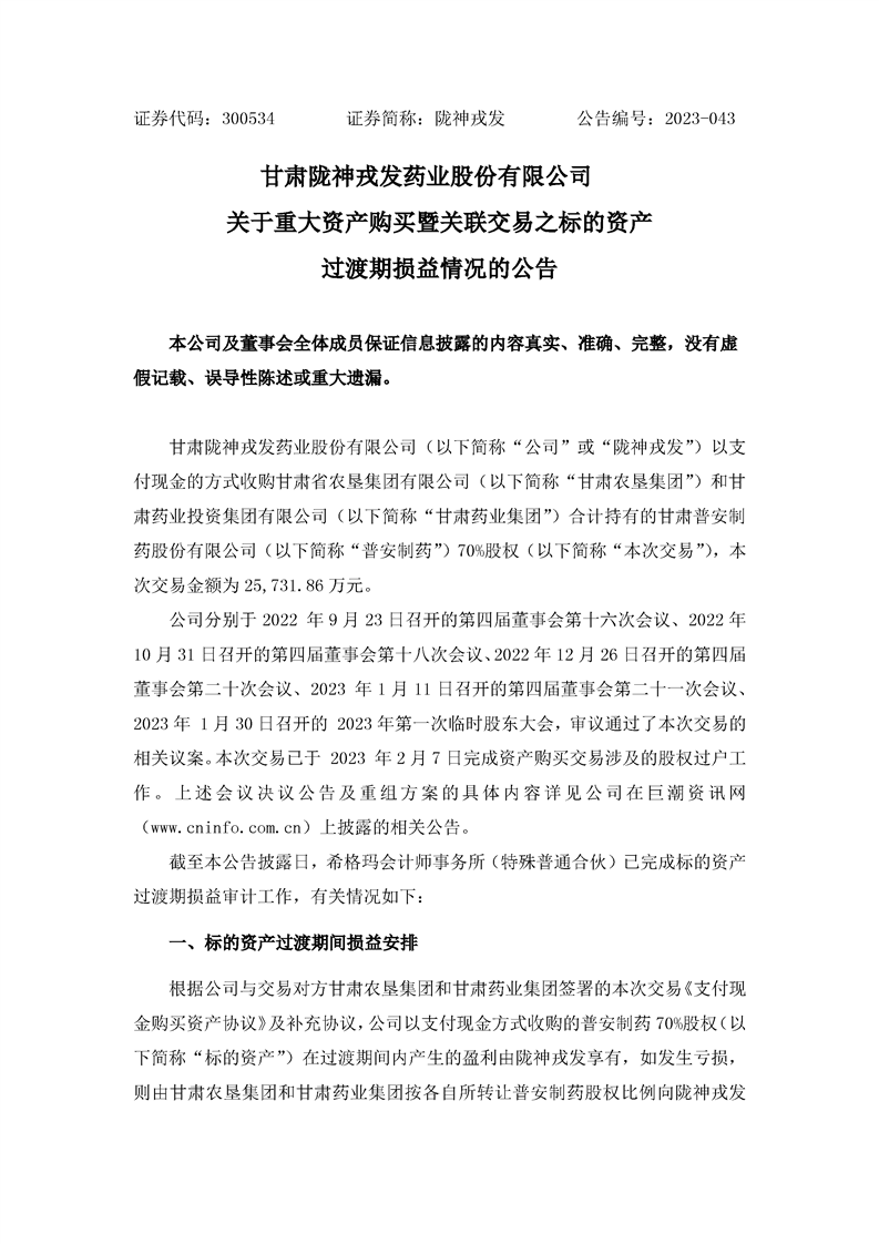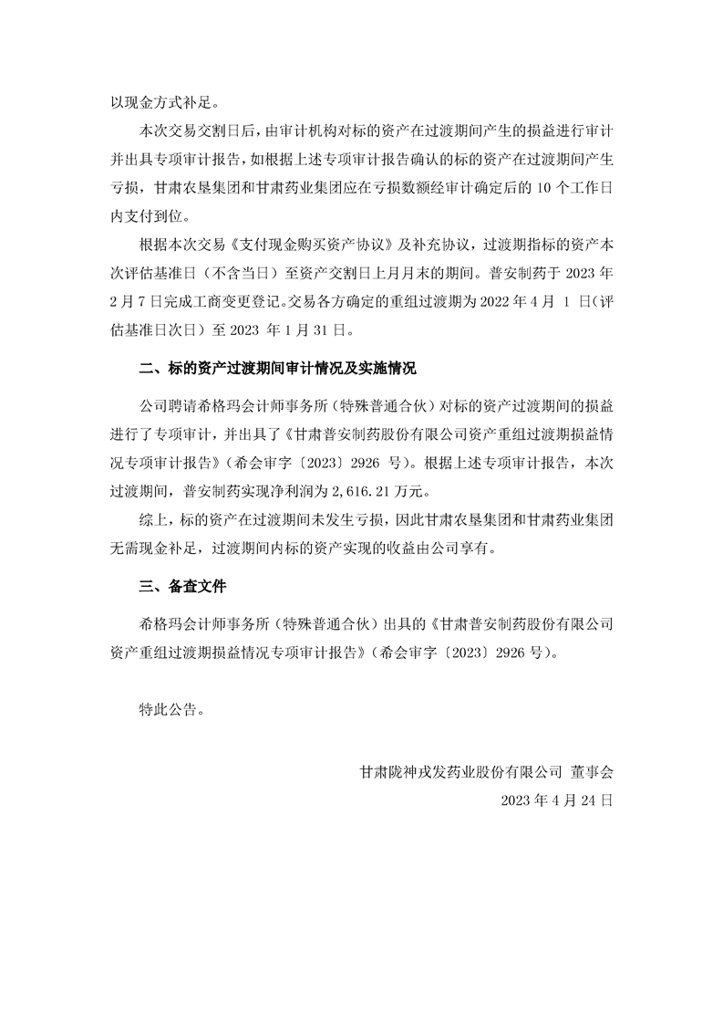 关于重大资产购买暨关联交易之标的资产过渡期损益情况的公告