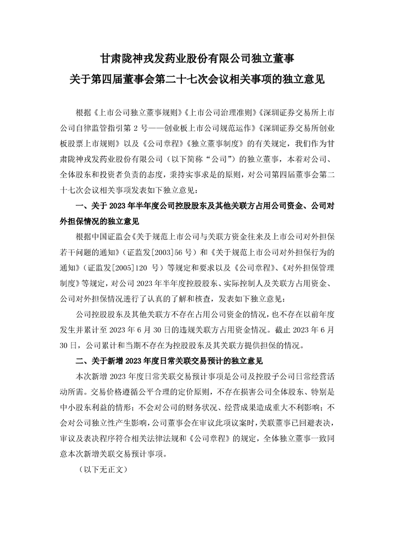 独立董事关于第四届董事会第二十七次会议相关事项的独立意见