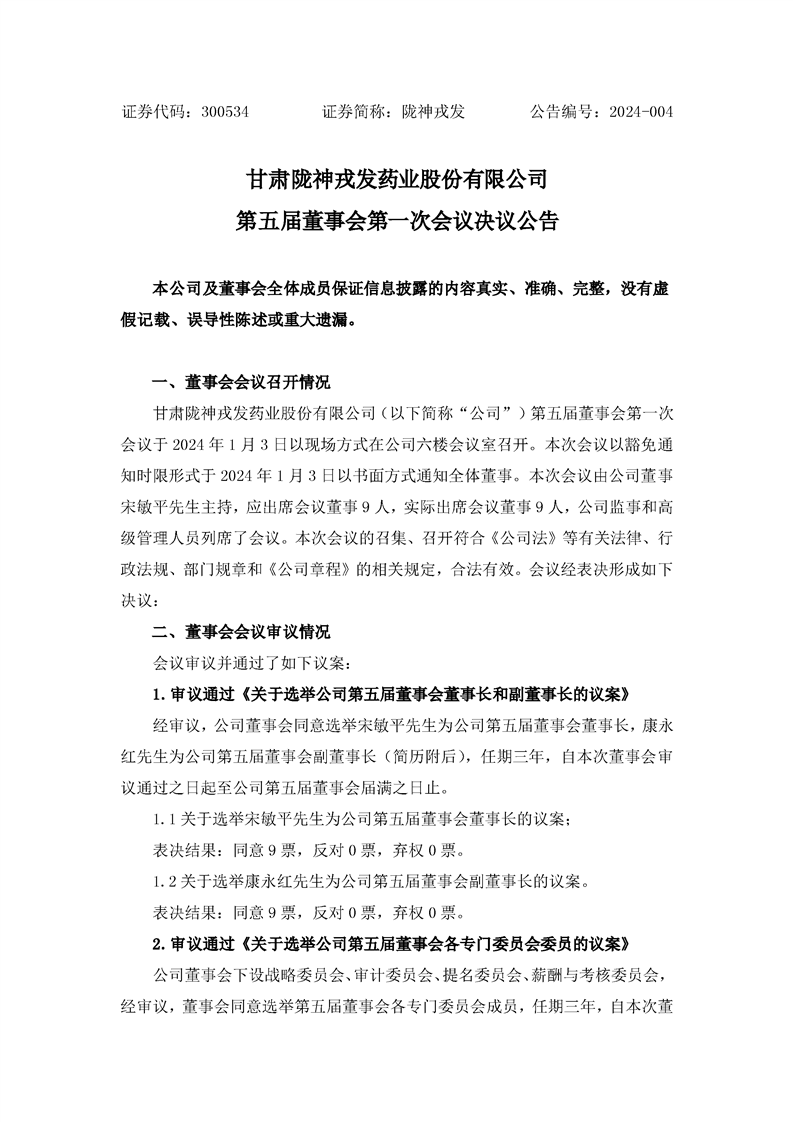 第五届董事会第一次会议决议公告