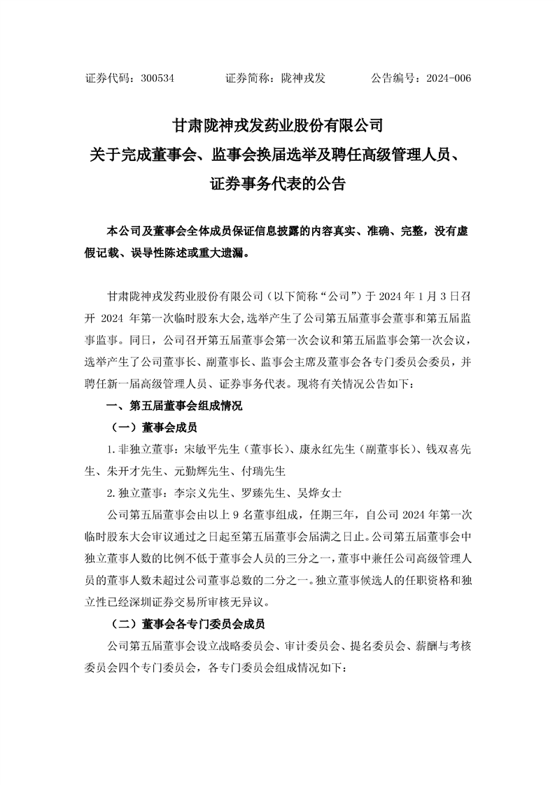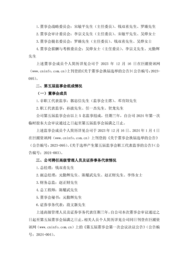 关于完成董事会、监事会换届选举及聘任高级管理人员、证券事务代表的公告