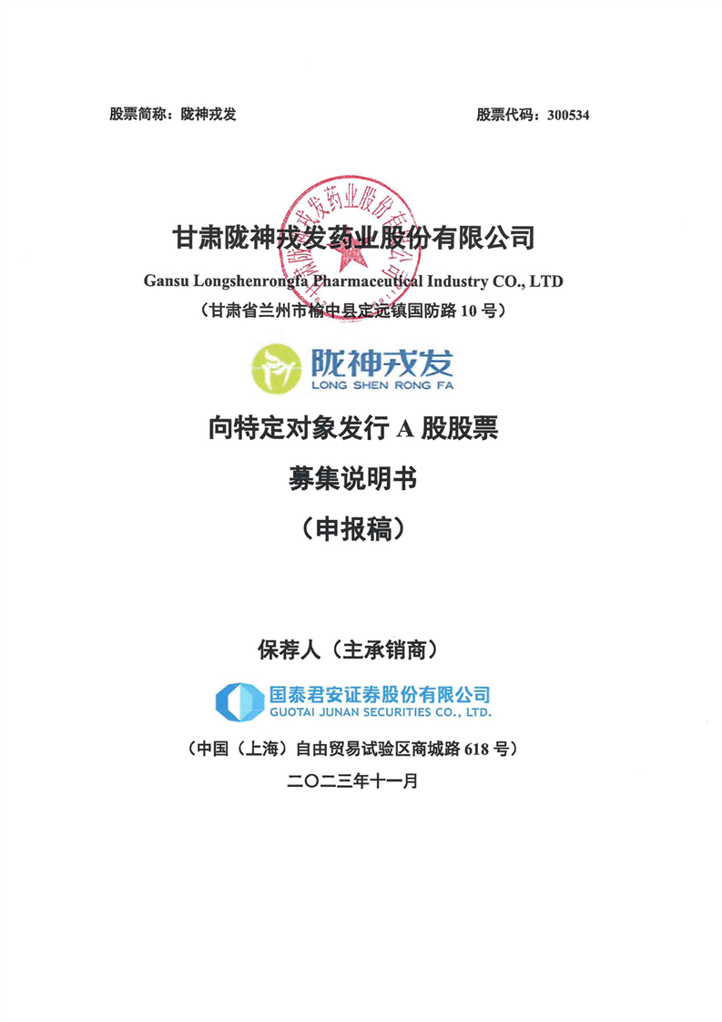 甘肃非凡娱乐药业股份有限公司向特定对象发行A股股票募集说明书(申报稿)