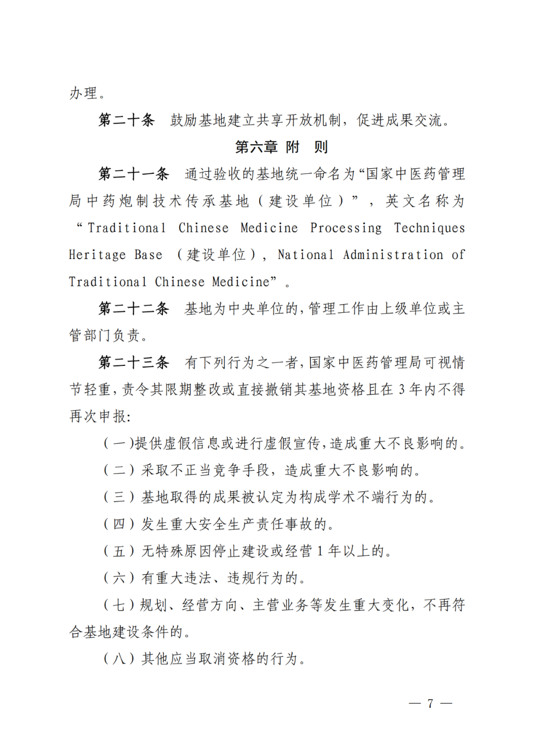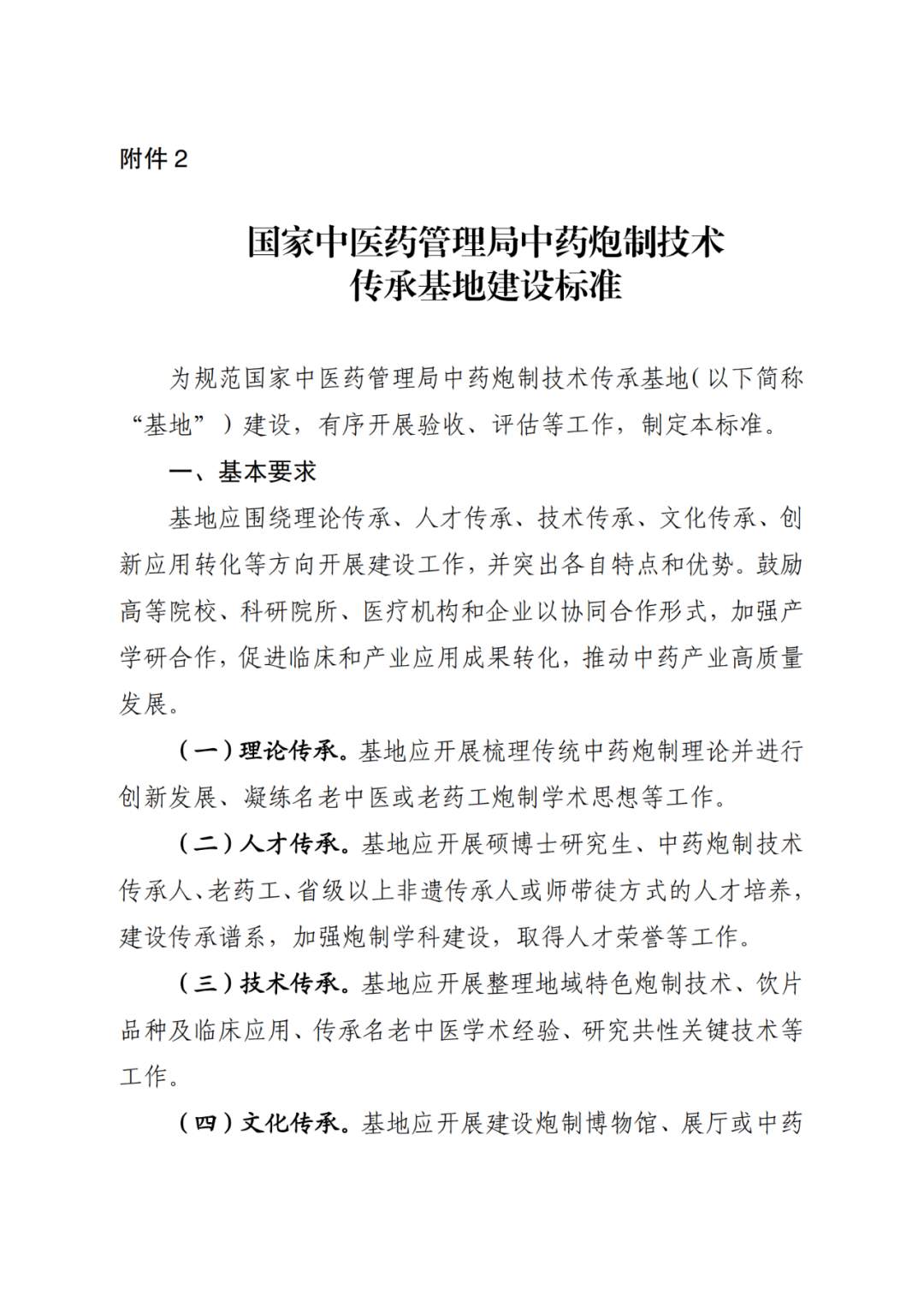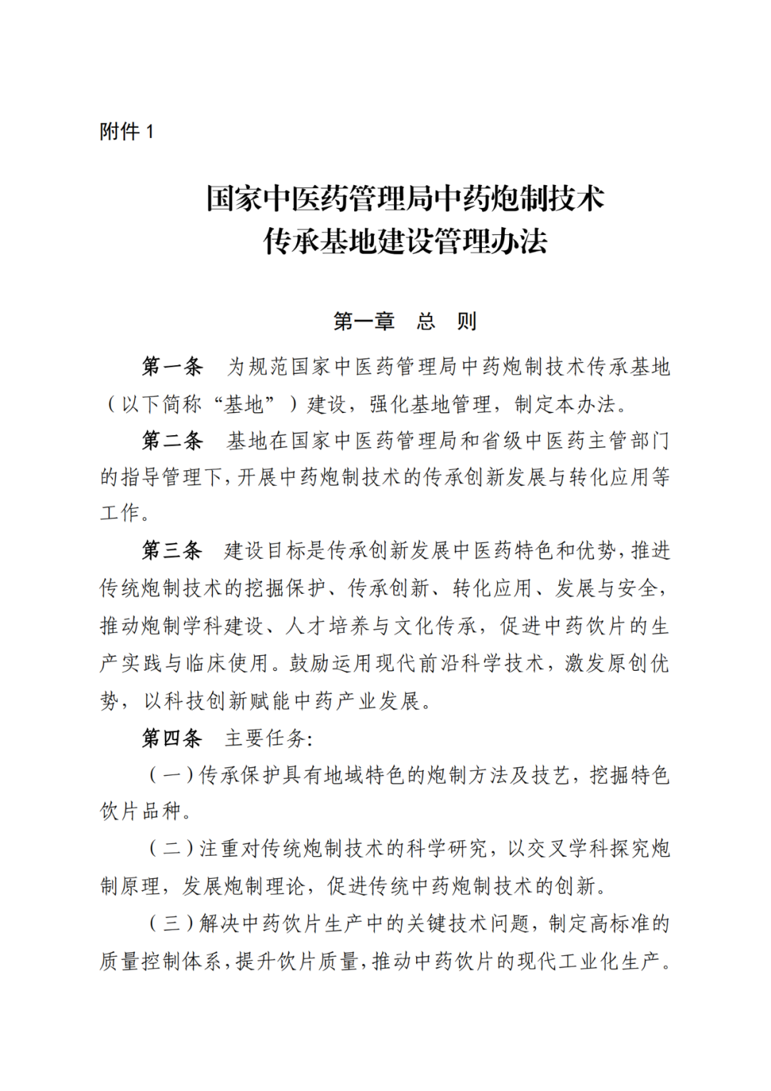 附件:1.国家中医药管理局中药炮制技术传承基地建设管理办法