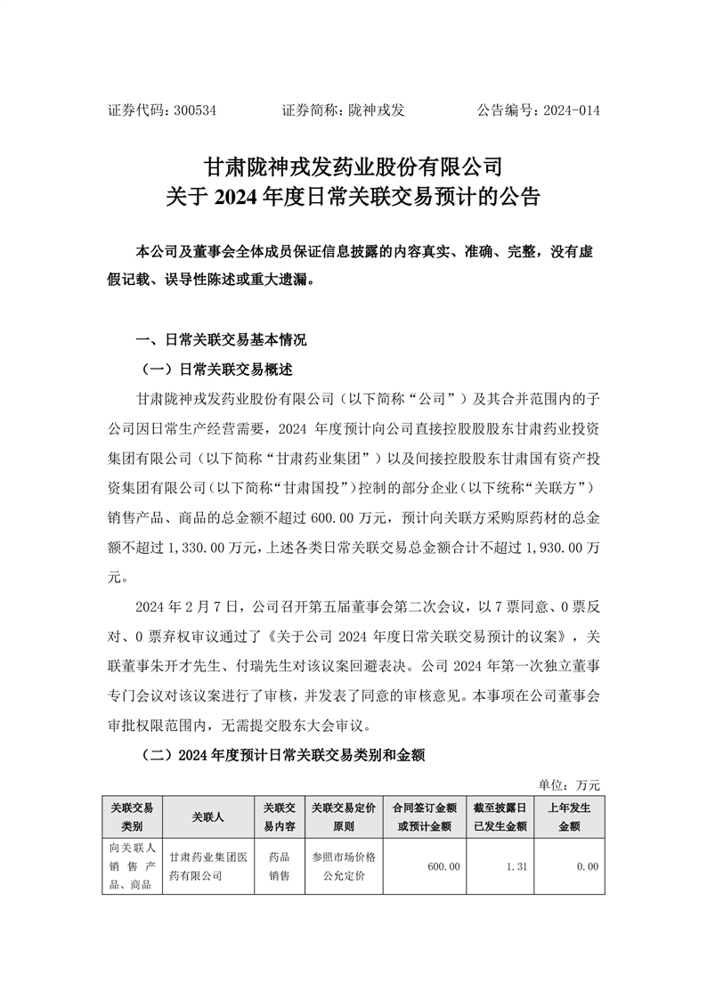 关于2024年度日常关联交易预计的公告