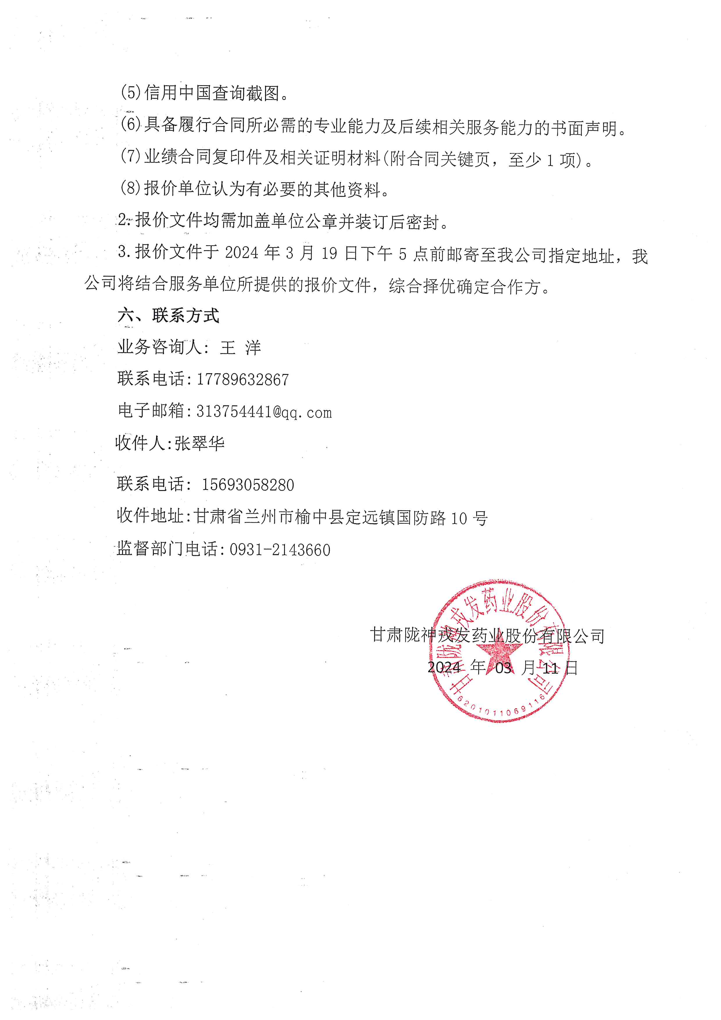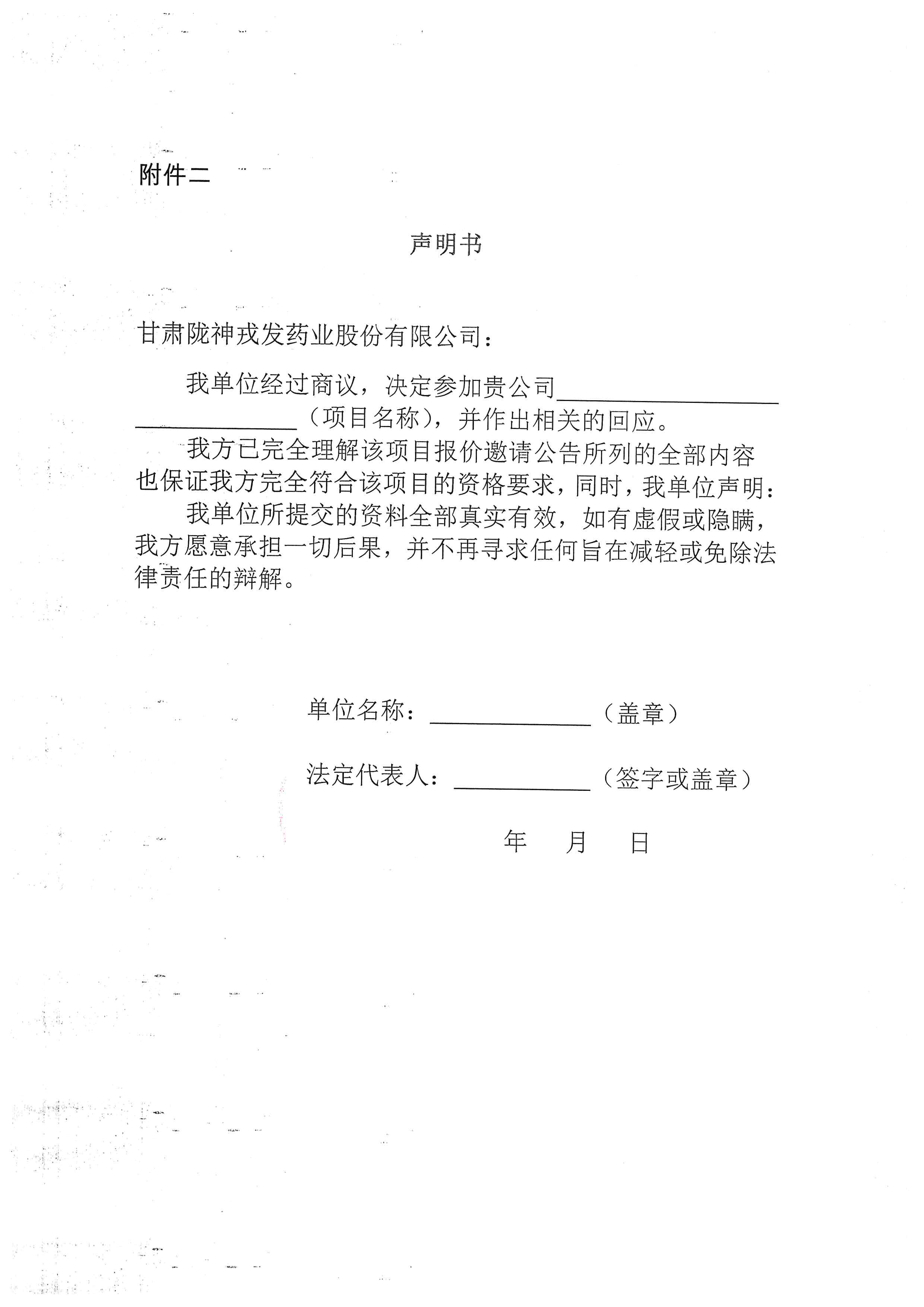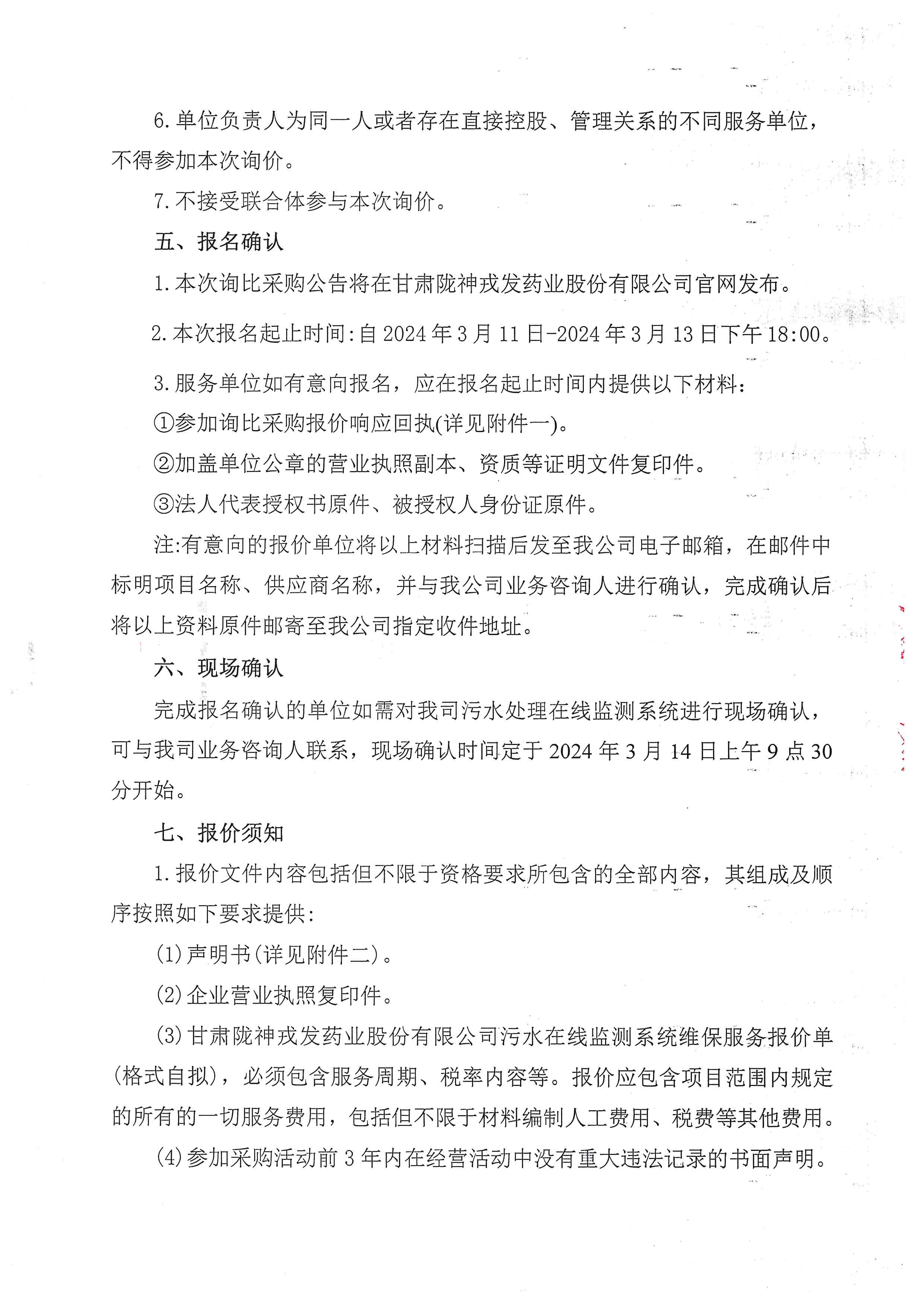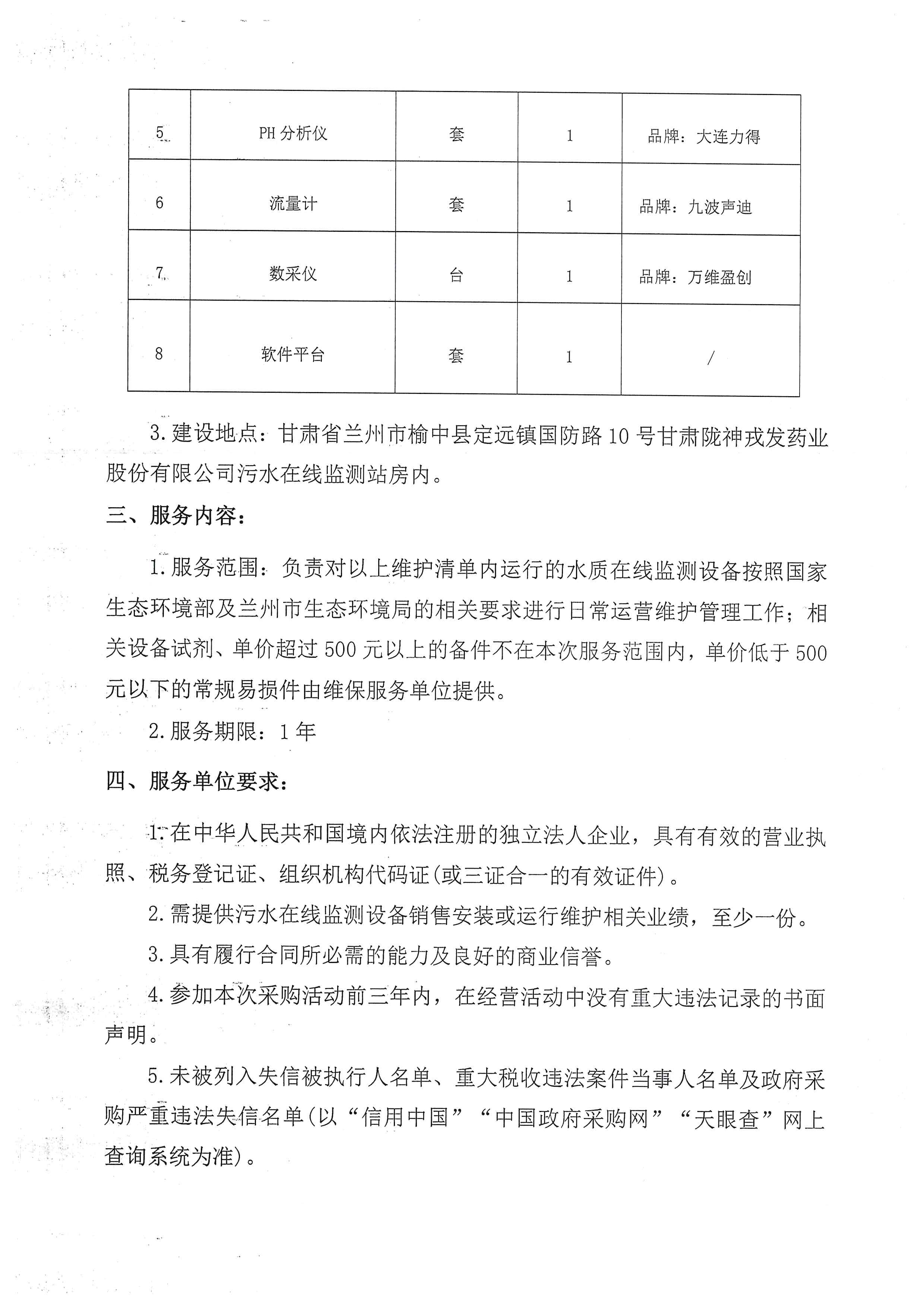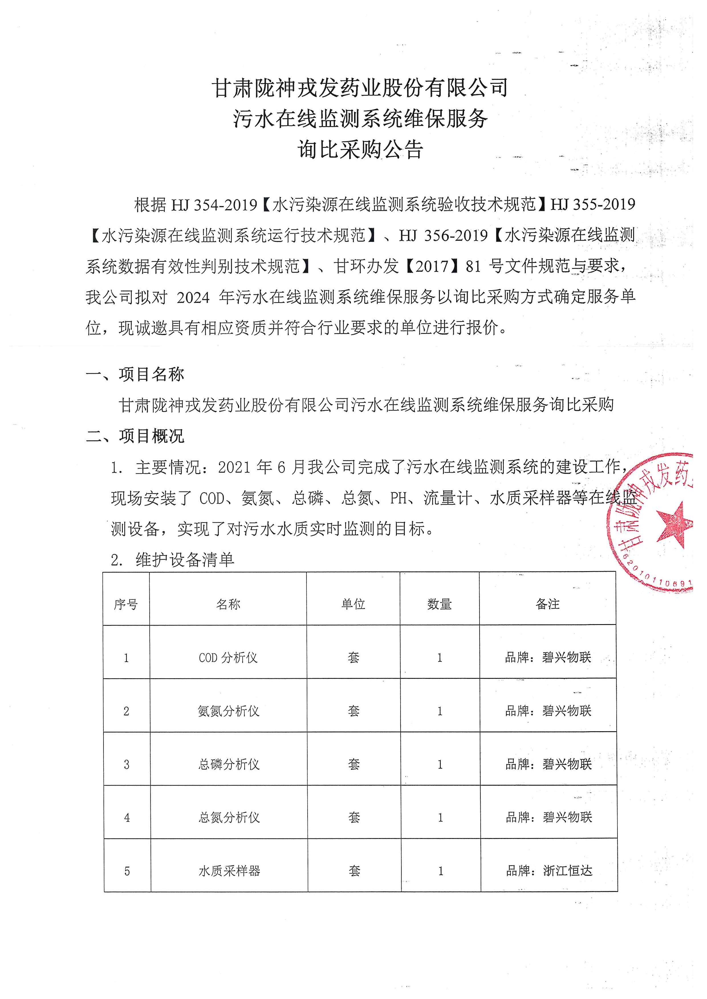 甘肃非凡娱乐药业股份有限公司污水在线监测系统维保服务询比采购公告