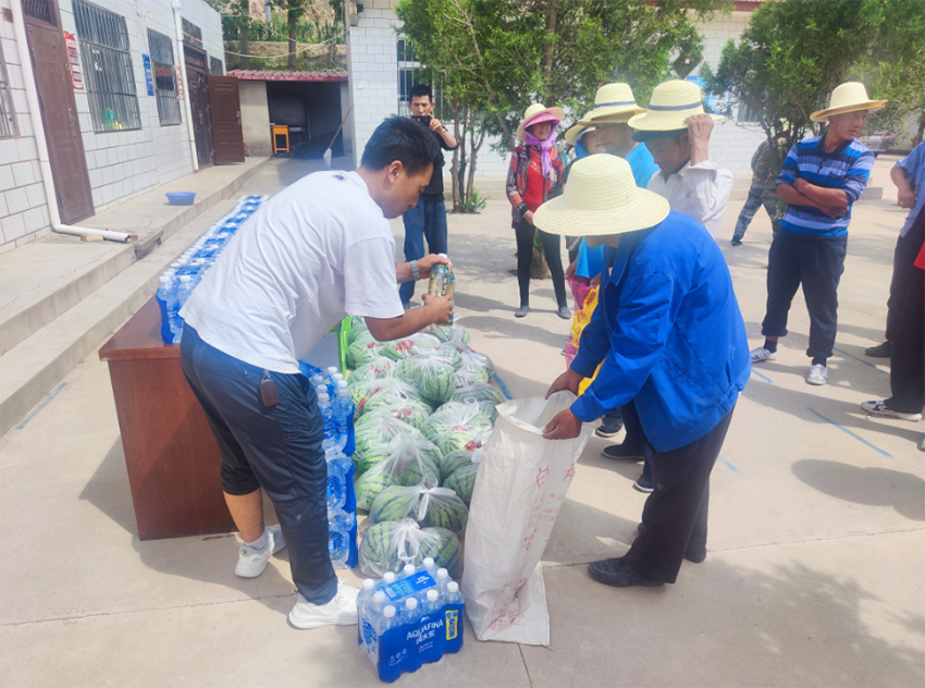 活动现场,非凡娱乐驻村干部为帮扶村公益岗人员、村两委、社长们送上了宣肺止嗽合剂、矿泉水、西瓜等物品,对长期顶着烈日依然上路作业、巡林护林的人员送去慰问和感谢,并叮嘱大家在高温天气下劳动,要合理安排作业时间,随身携带消暑降温用品,及时到阴凉处休息、饮用防暑药品。