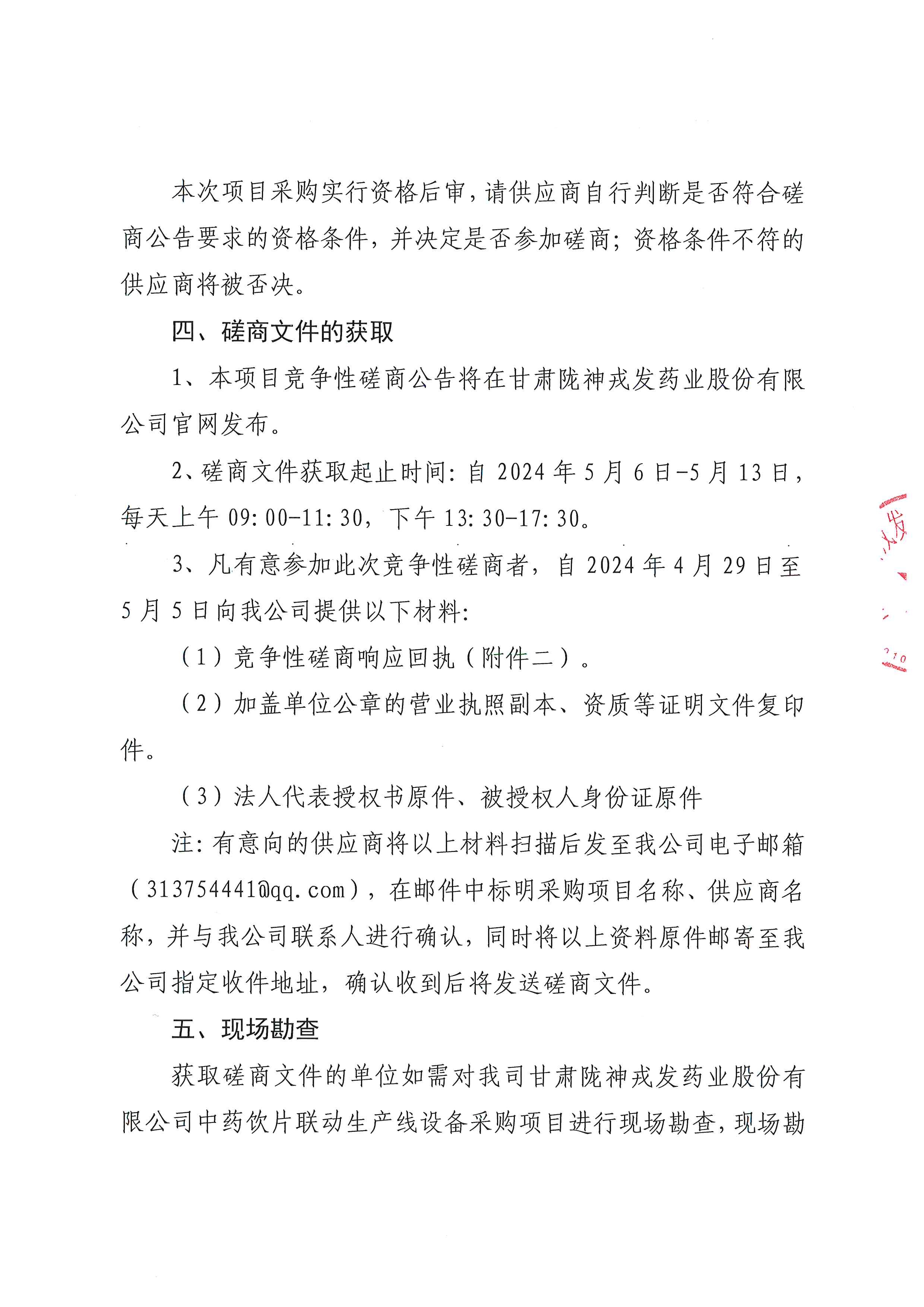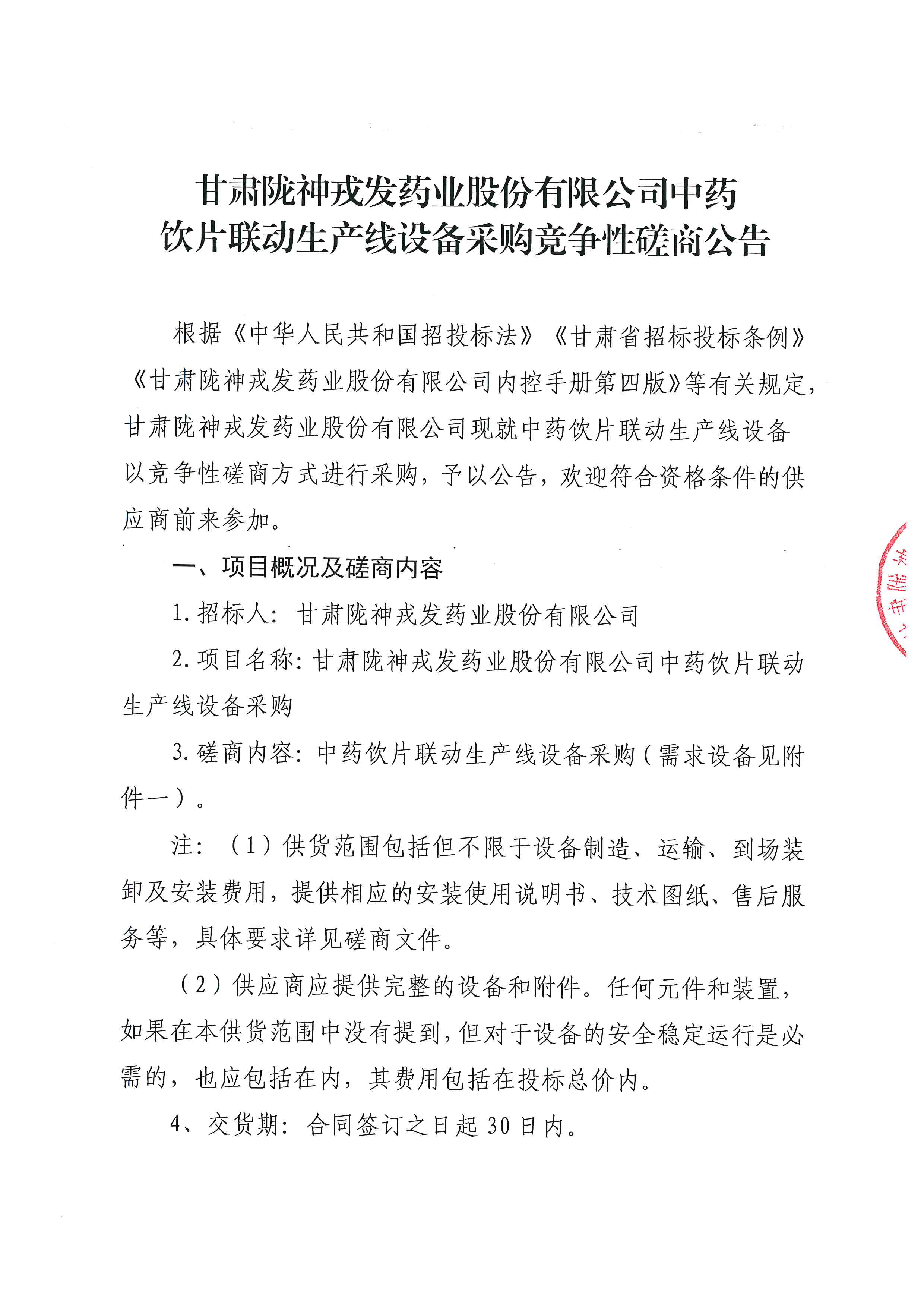 甘肃非凡娱乐药业股份有限公司中药饮片联动生产线设备采购竞争性磋商公告