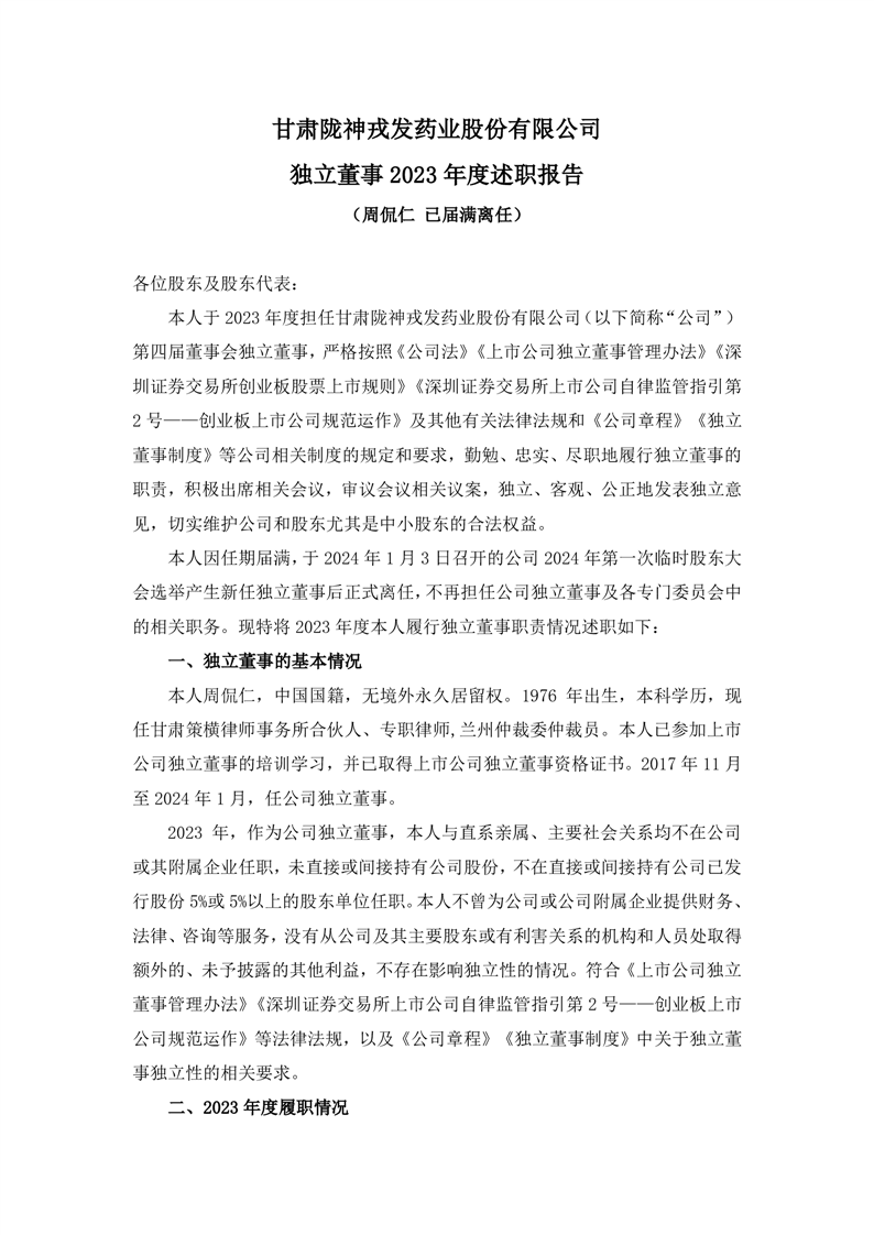 2023年度独立董事述职报告(周侃仁 已届满离任)