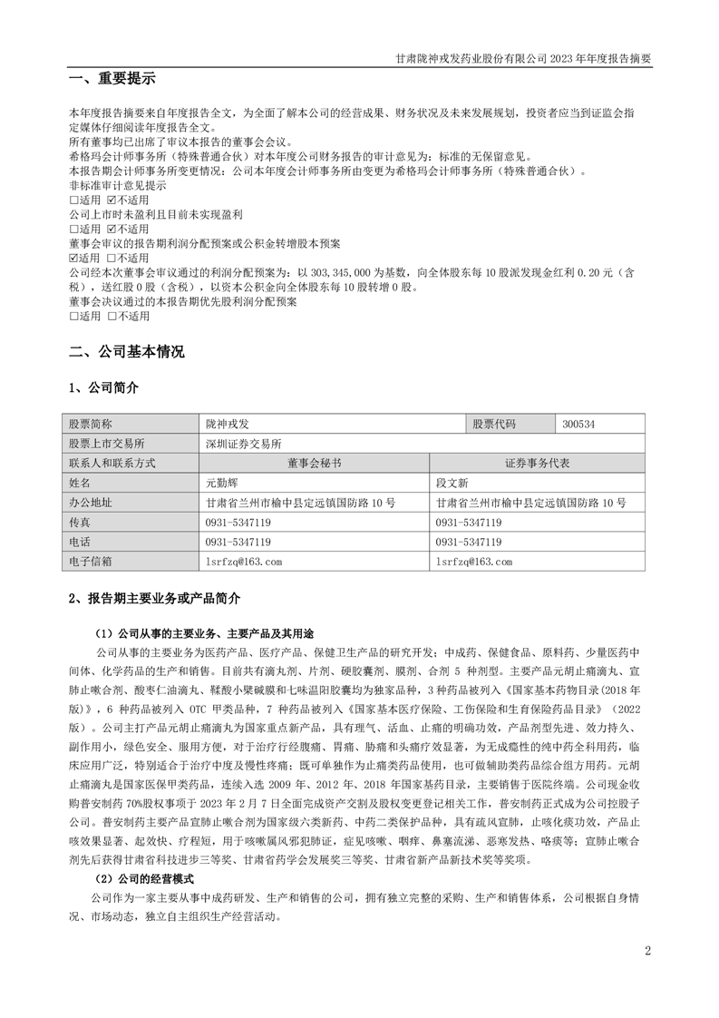2023年年度报告摘要
