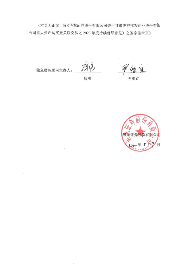 华龙证券股份有限公司关于甘肃非凡娱乐药业股份有限公司重大资产购买暨关联交易之2023年度持续督导意见(更正后)