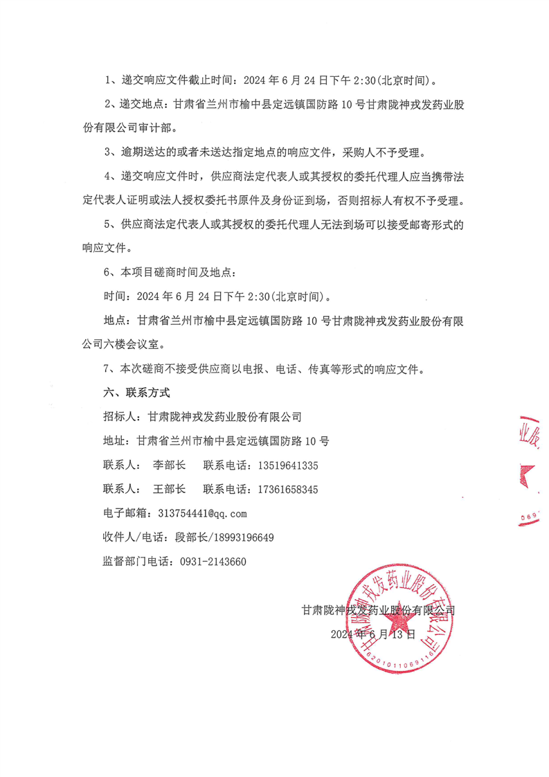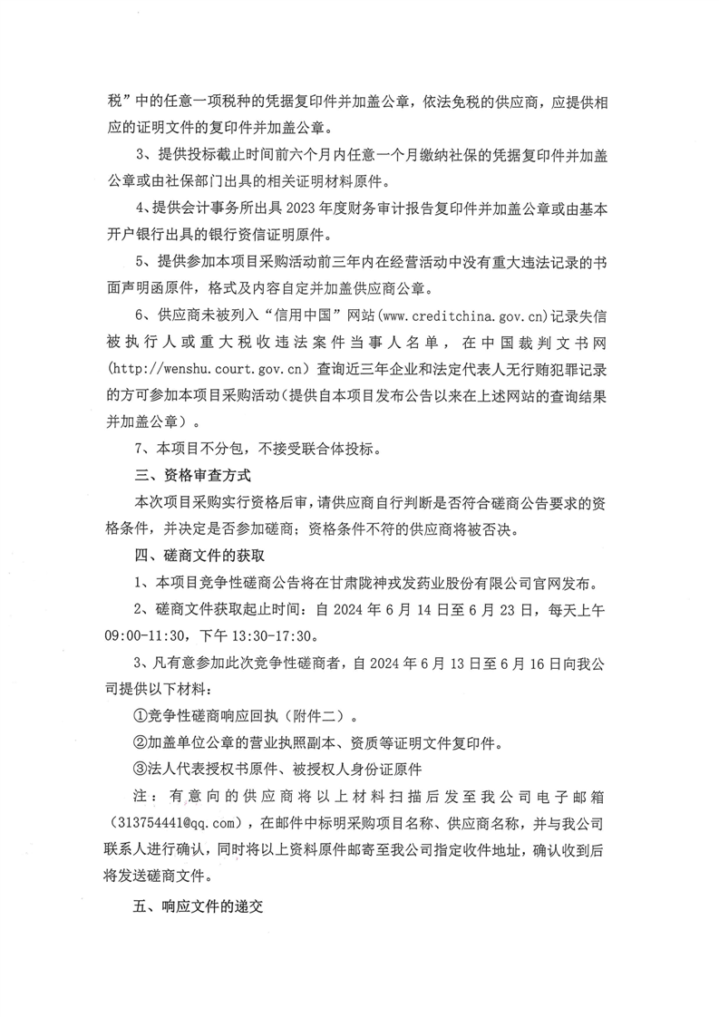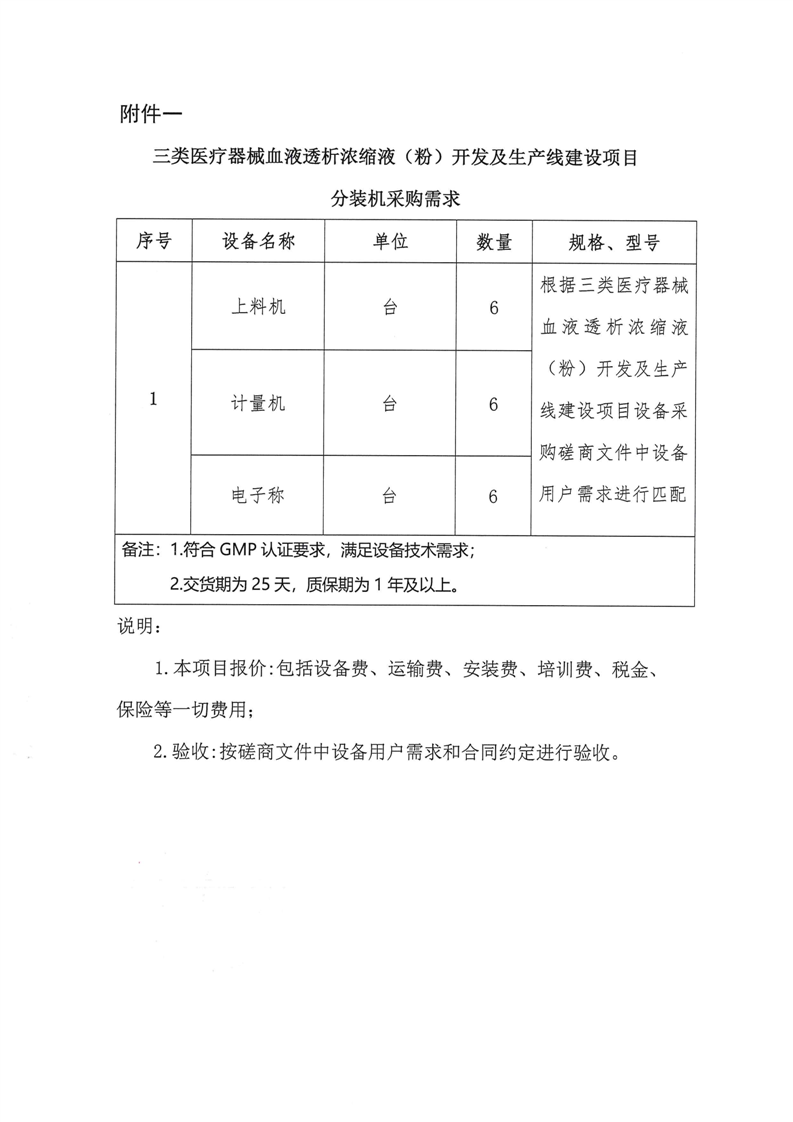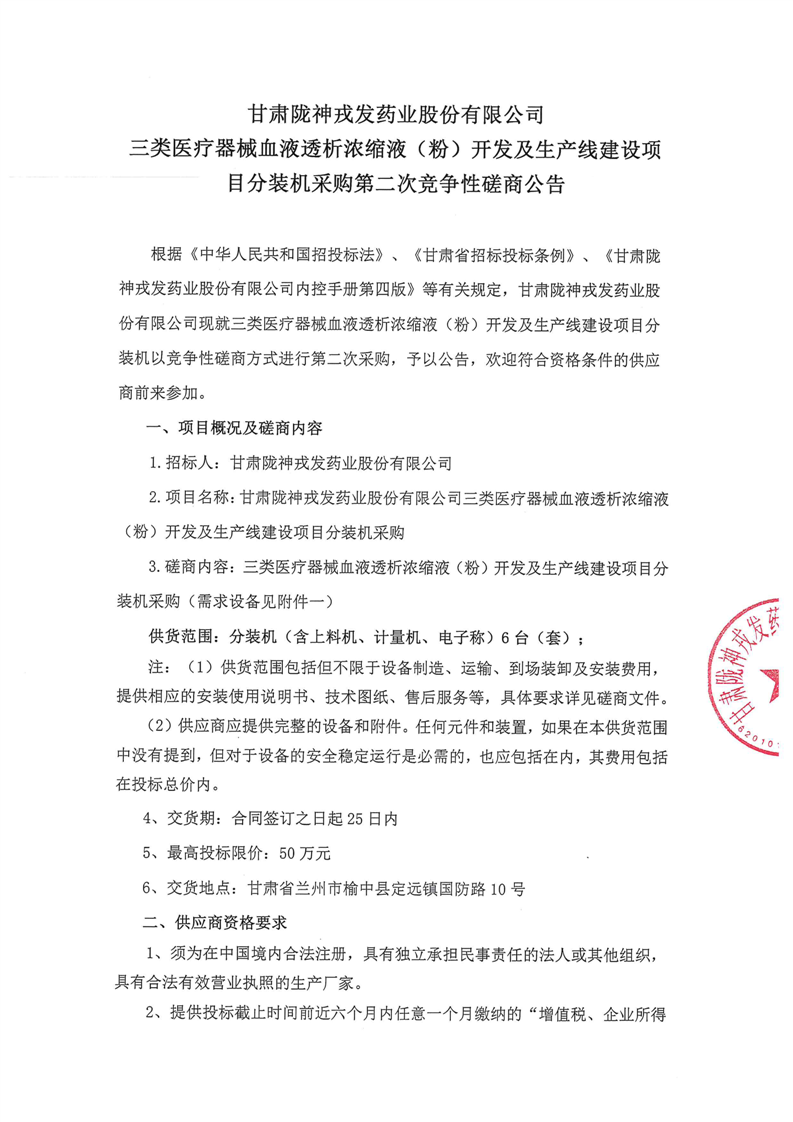 甘肃非凡娱乐药业股份有限公司三类医疗器械血液透析浓缩液(粉)开发及生产线建设项目分装机采购第二次竞争性磋商公告
