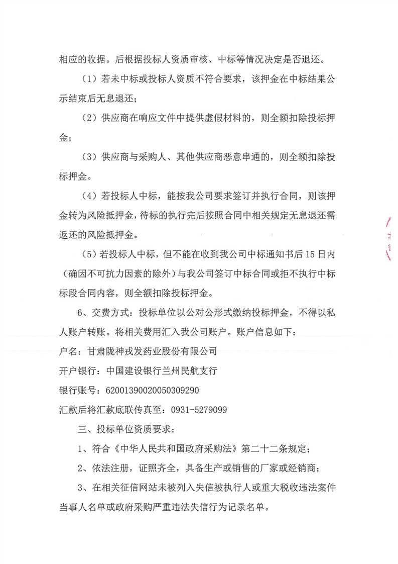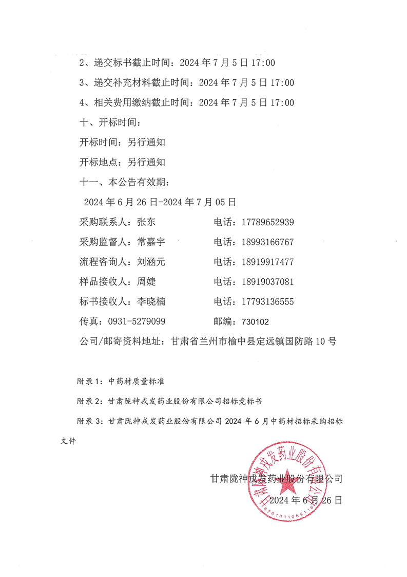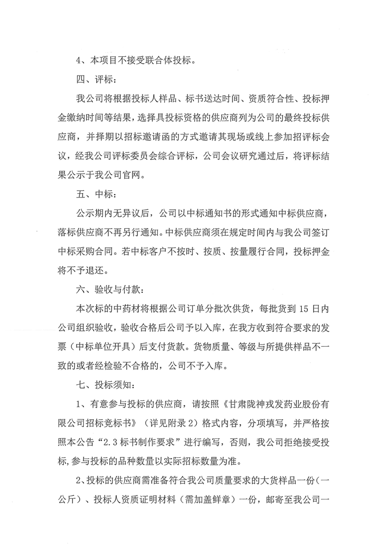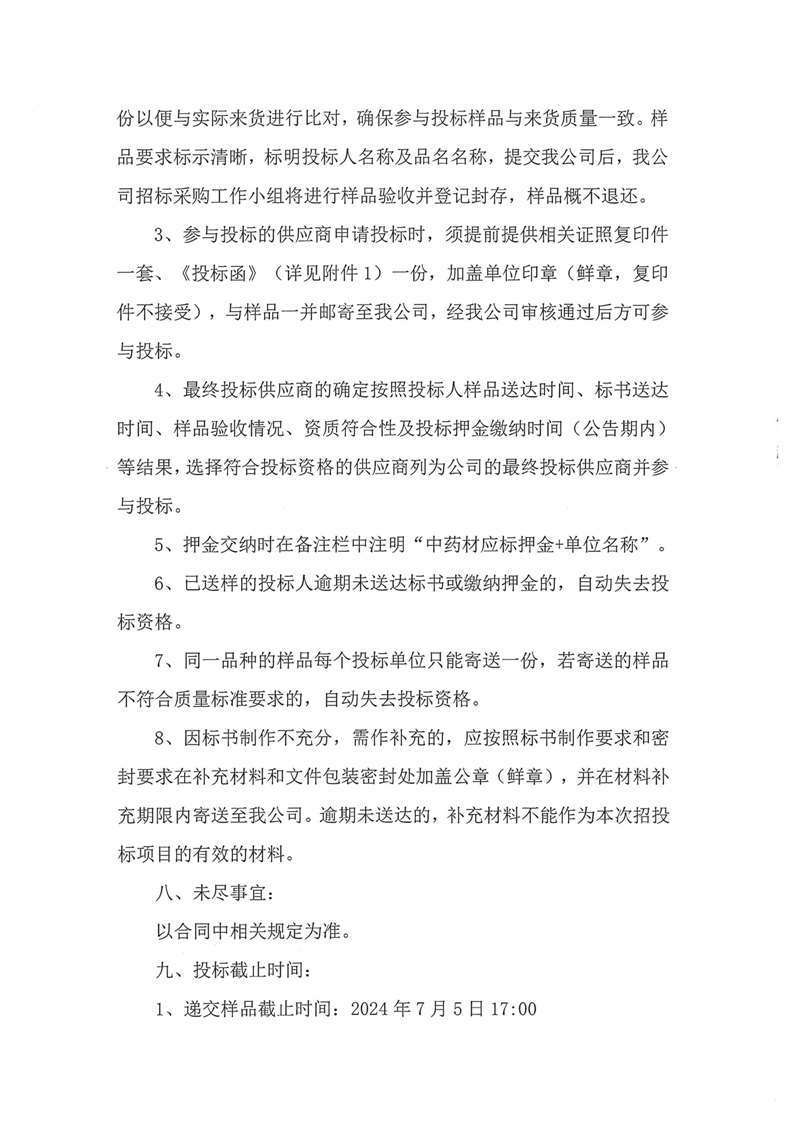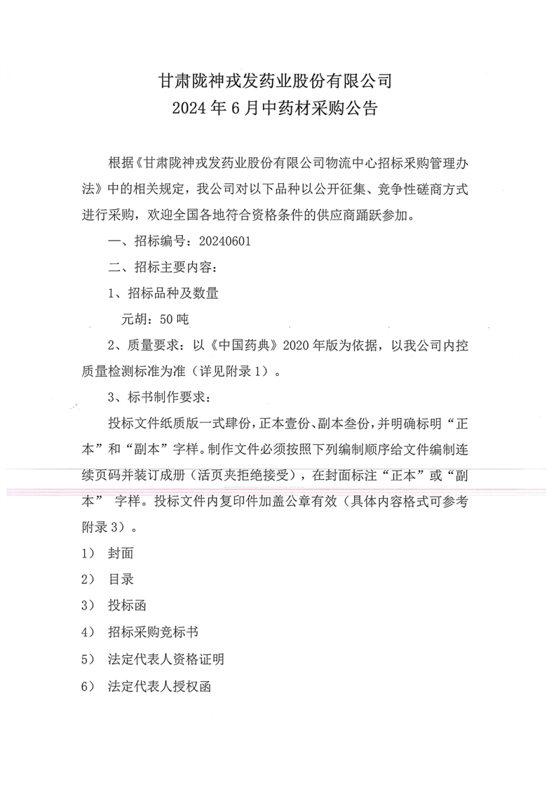 甘肃非凡娱乐药业股份有限公司2024年6月中药材采购公告