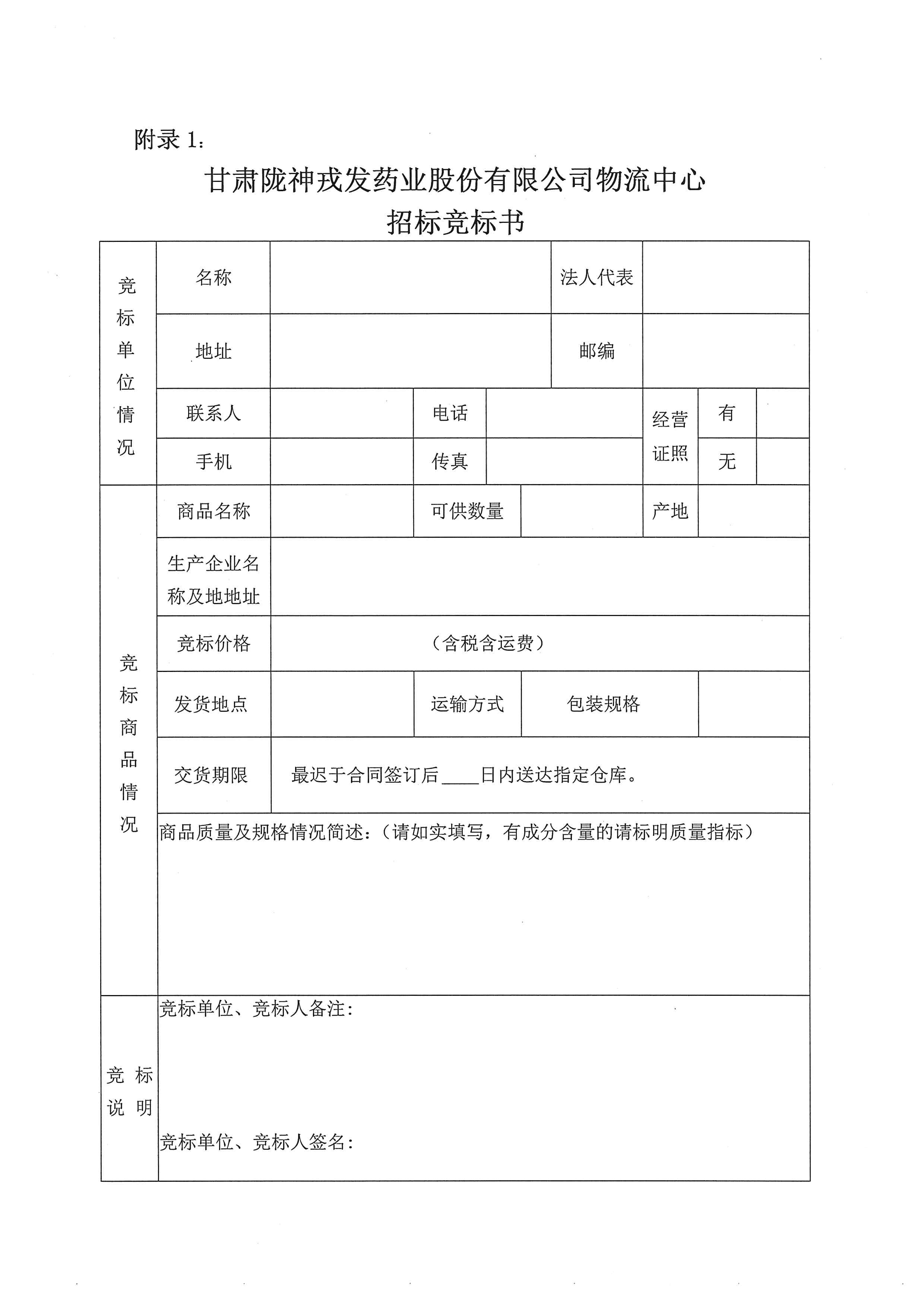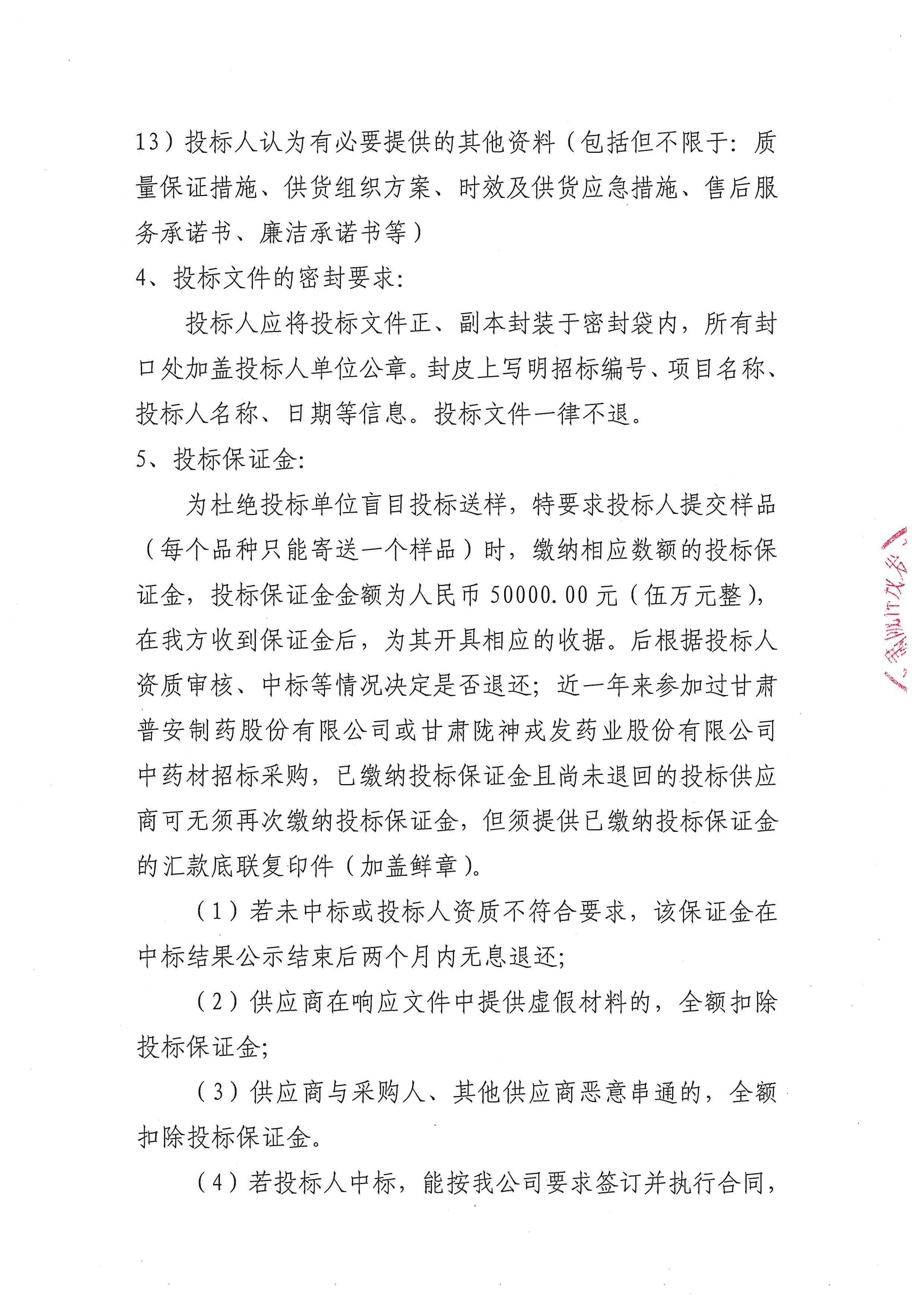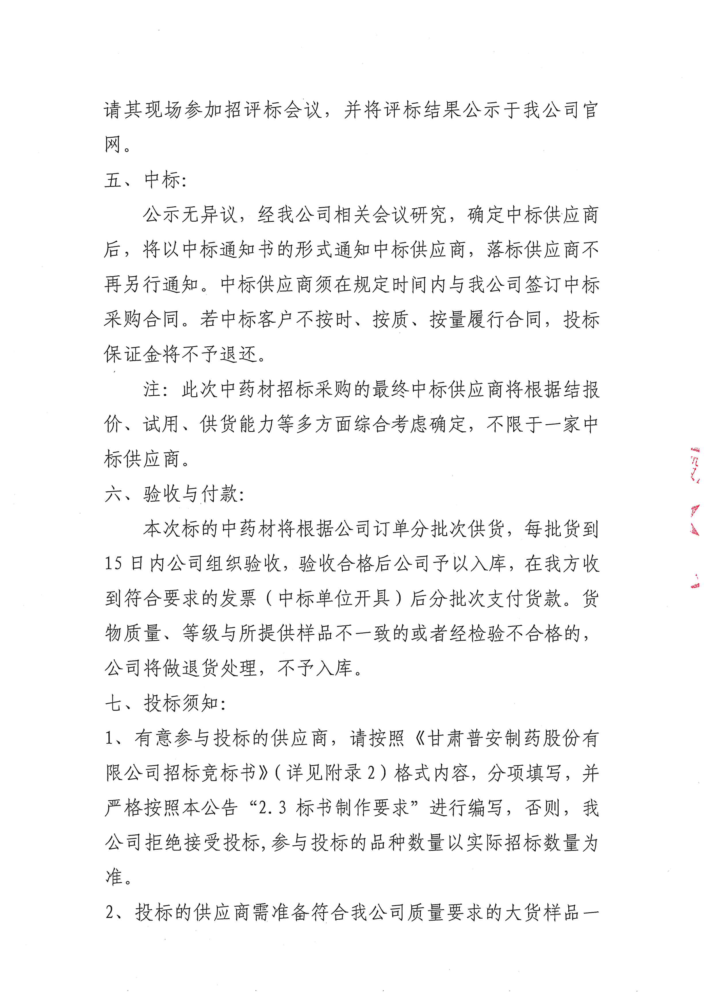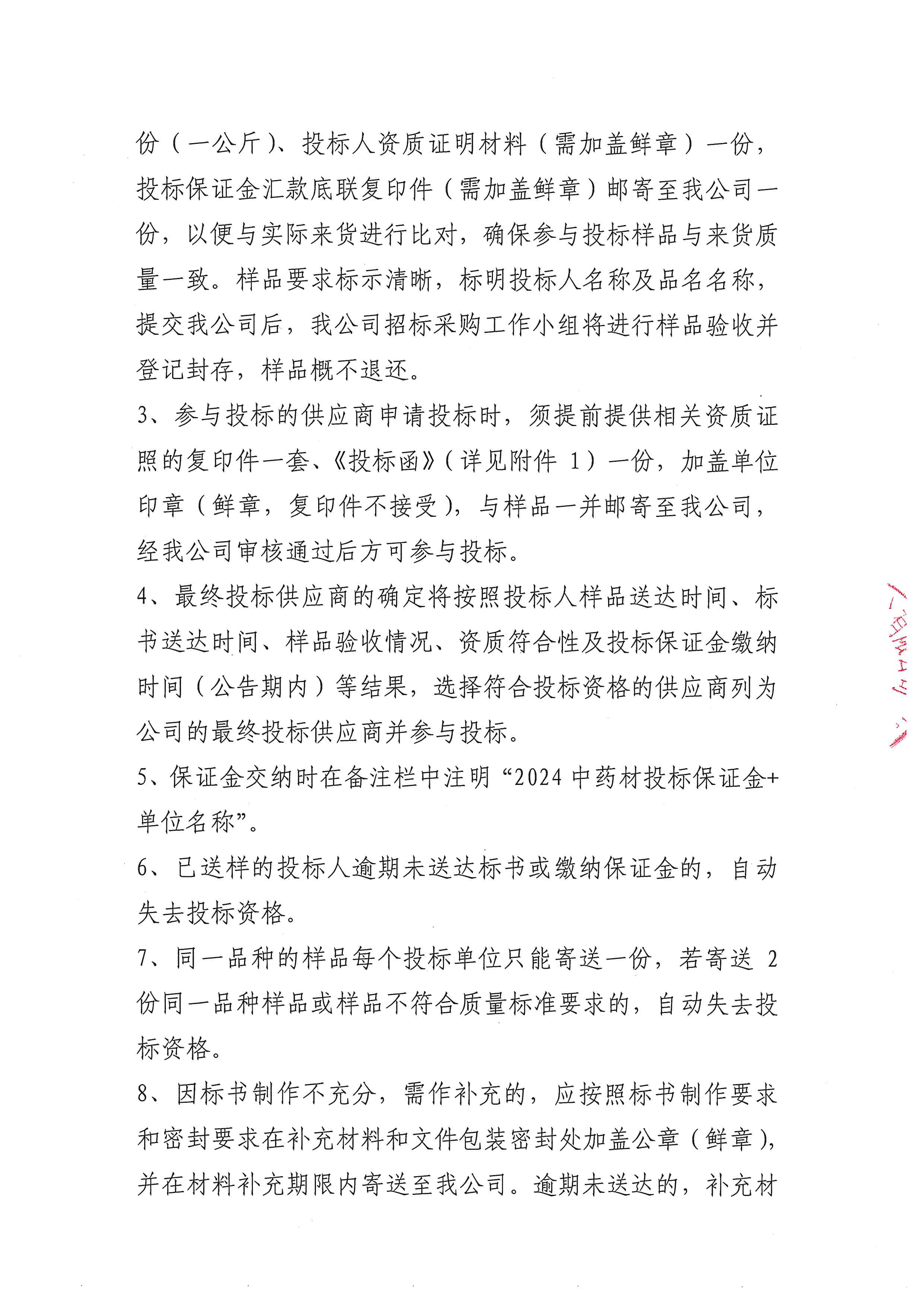 甘肃非凡娱乐药业股份有限公司物流中心2024年度中药材招标采购公告