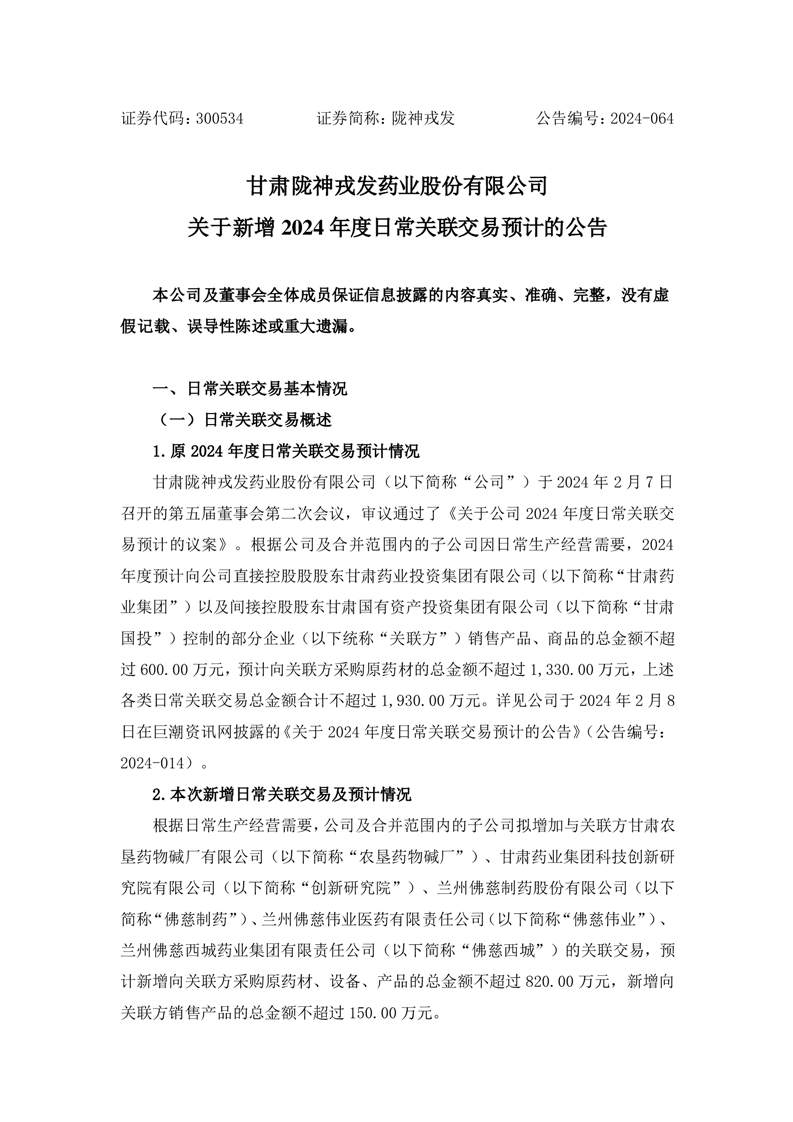 关于新增2024年度日常关联交易预计的公告