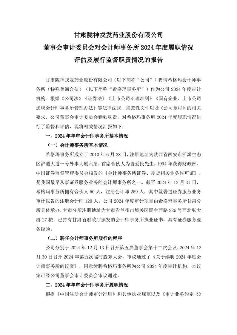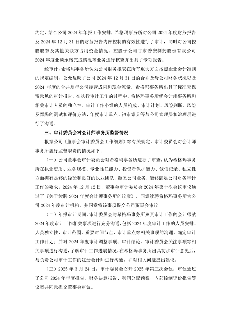 董事会审计委员会对会计师事务所2024年度履职情况评估及履行监督职责情况的报告