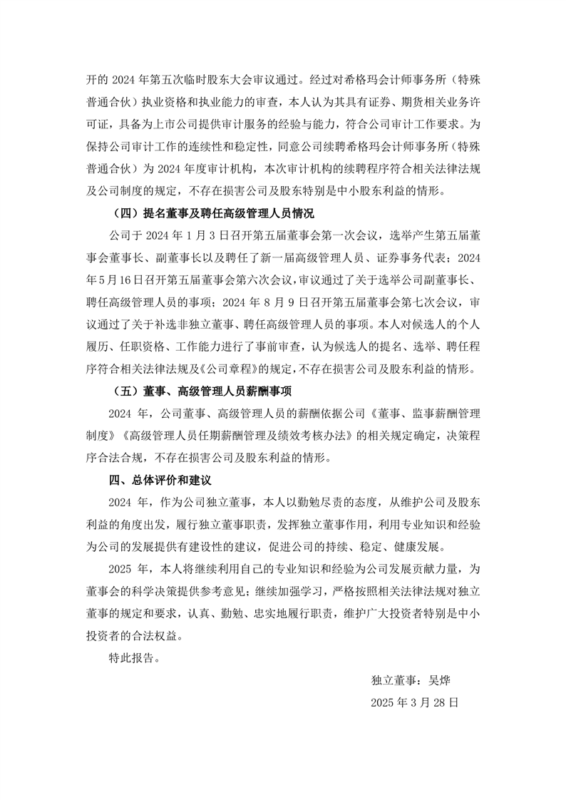 独立董事2024年度述职报告(吴烨)