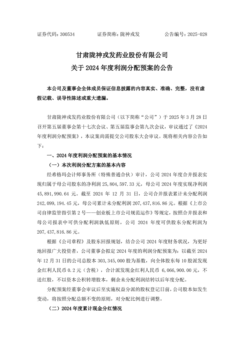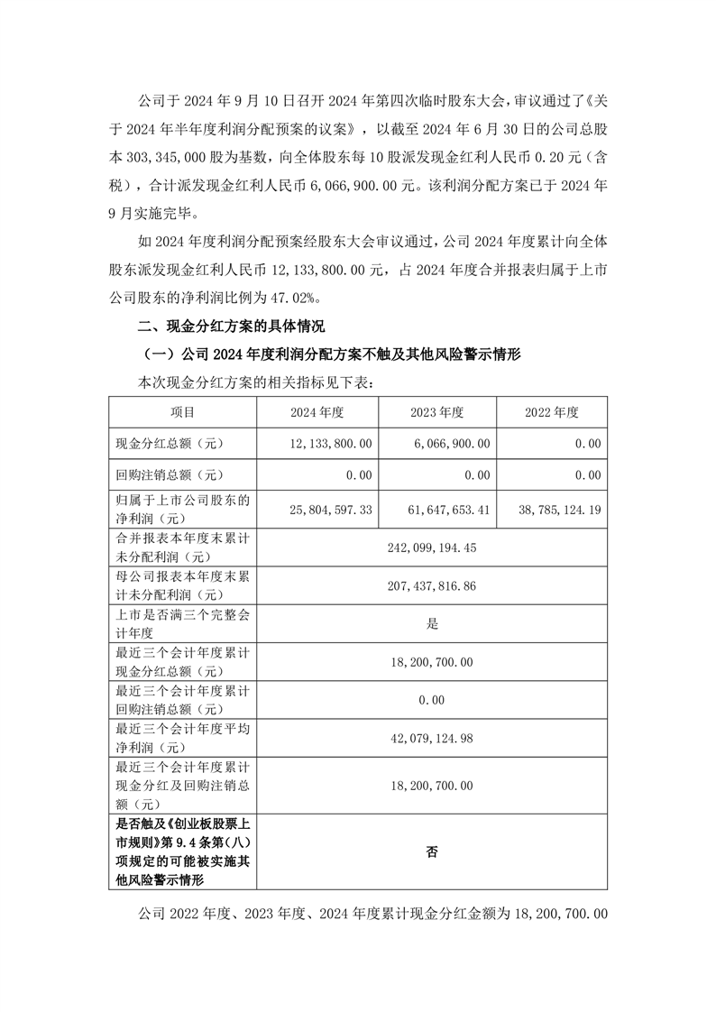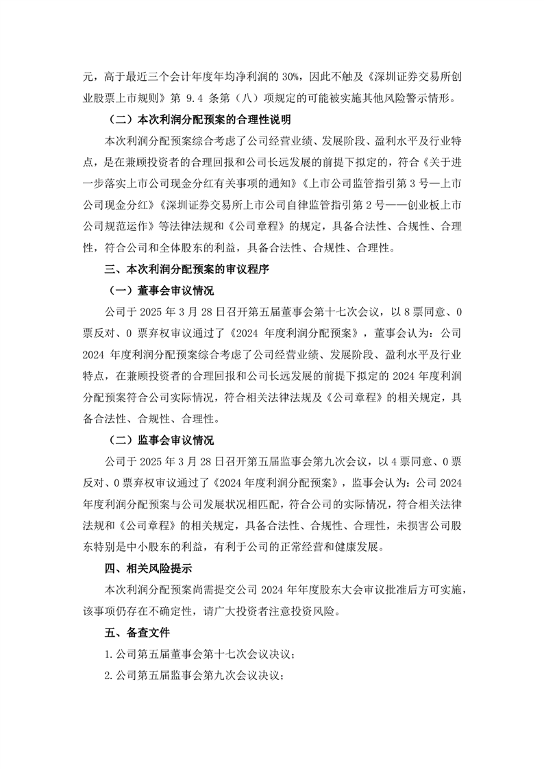 关于2024年度利润分配预案的公告