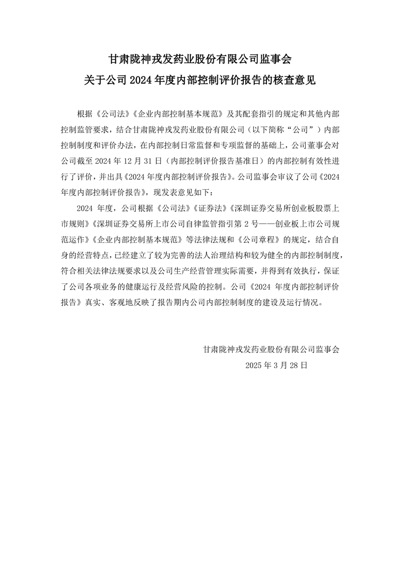 监事会关于公司2024年度内部控制评价报告的核查意见