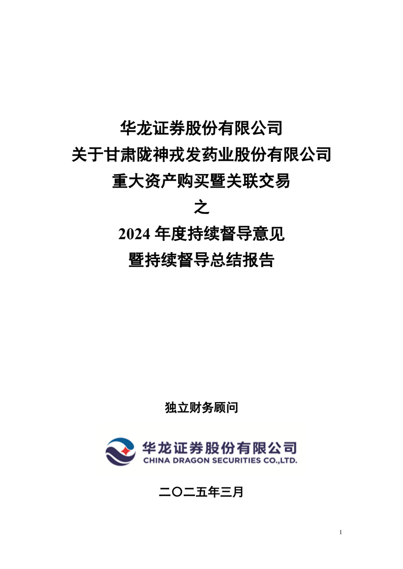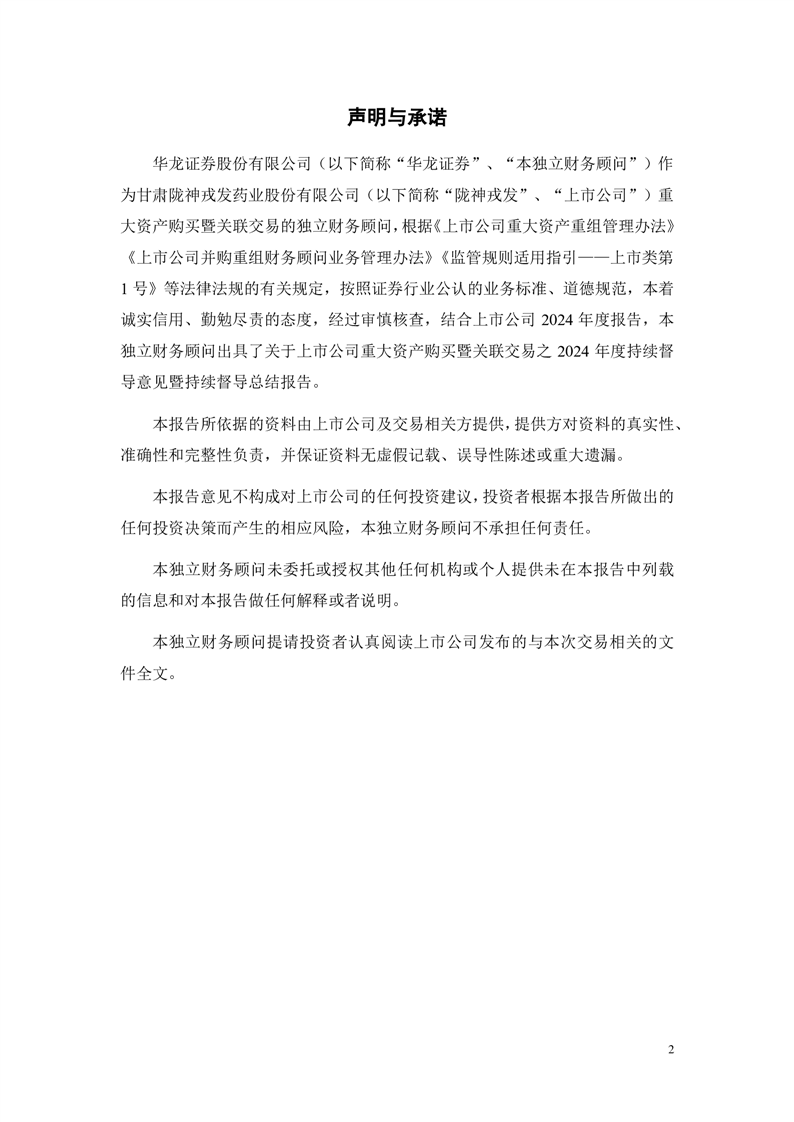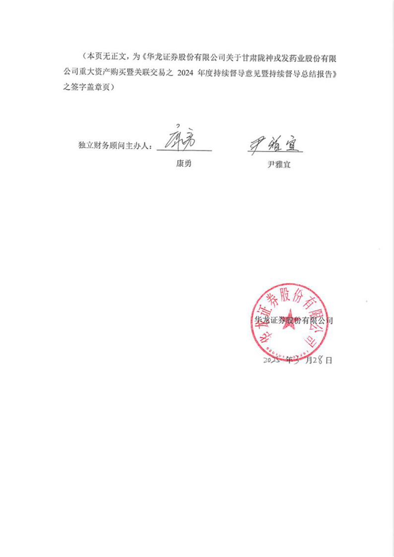 华龙证券股份有限公司关于甘肃非凡娱乐药业股份有限公司重大资产购买暨关联交易之2024年度持续督导意见暨持续督导总结报告