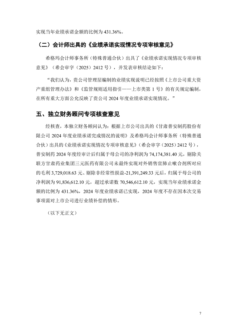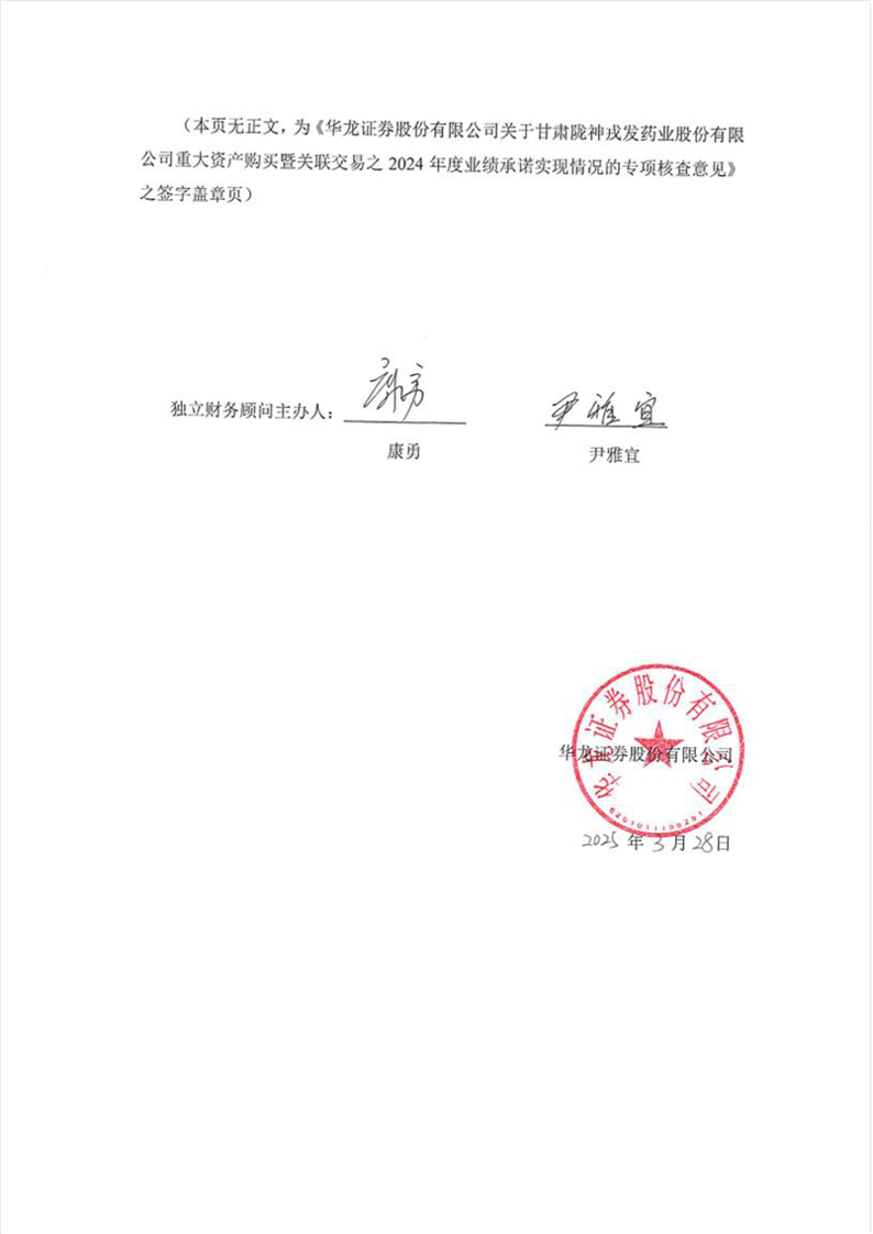 华龙证券股份有限公司关于甘肃非凡娱乐药业股份有限公司重大资产购买暨关联交易之2024年度业绩承诺实现情况的专项核查意见